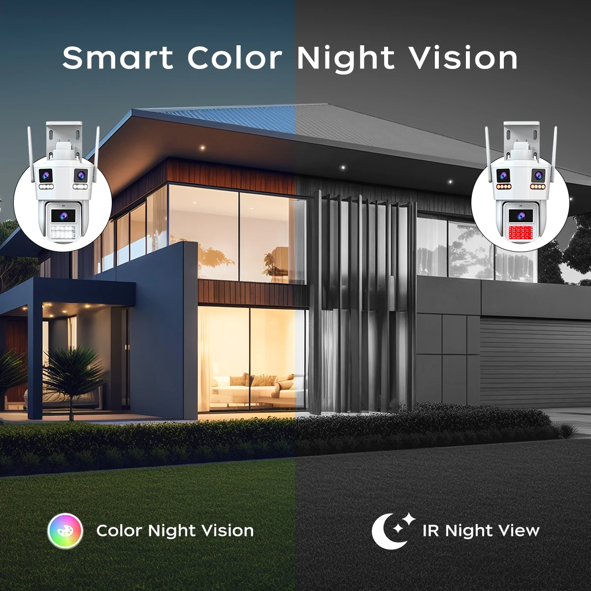 Built -in 15PCS White LED and 8PCS IR LED, you can choose full color night vision,smart color night vision or infrared normal night vision.