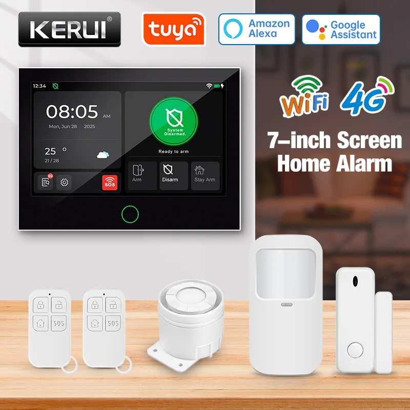 KERUI G70 4G WiFi GSM Wireless Home Alarm System GSM 7-inch IPS Large Touch Panel Screen Tuya Smart APP Security Burglar Alexa