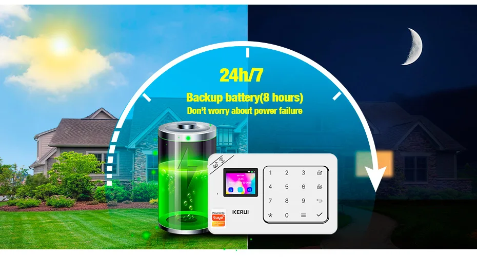 Arm and disarm KERUI Alarm with your voice and get mobile alerts about the Door/Window Open or smoke alarms