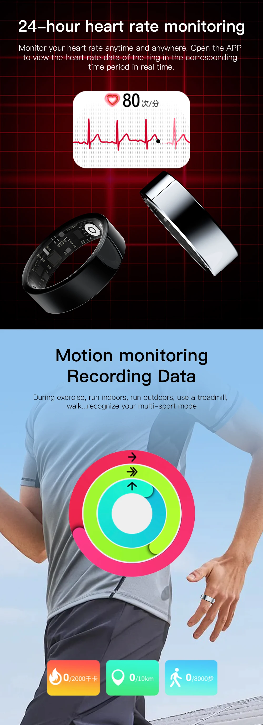 KEYSION New Smart Ring Men Women IP68 Waterproof Heart Rate Monitor Sleep Monitoring Fitness Tracker Sport Modes for IOS Android