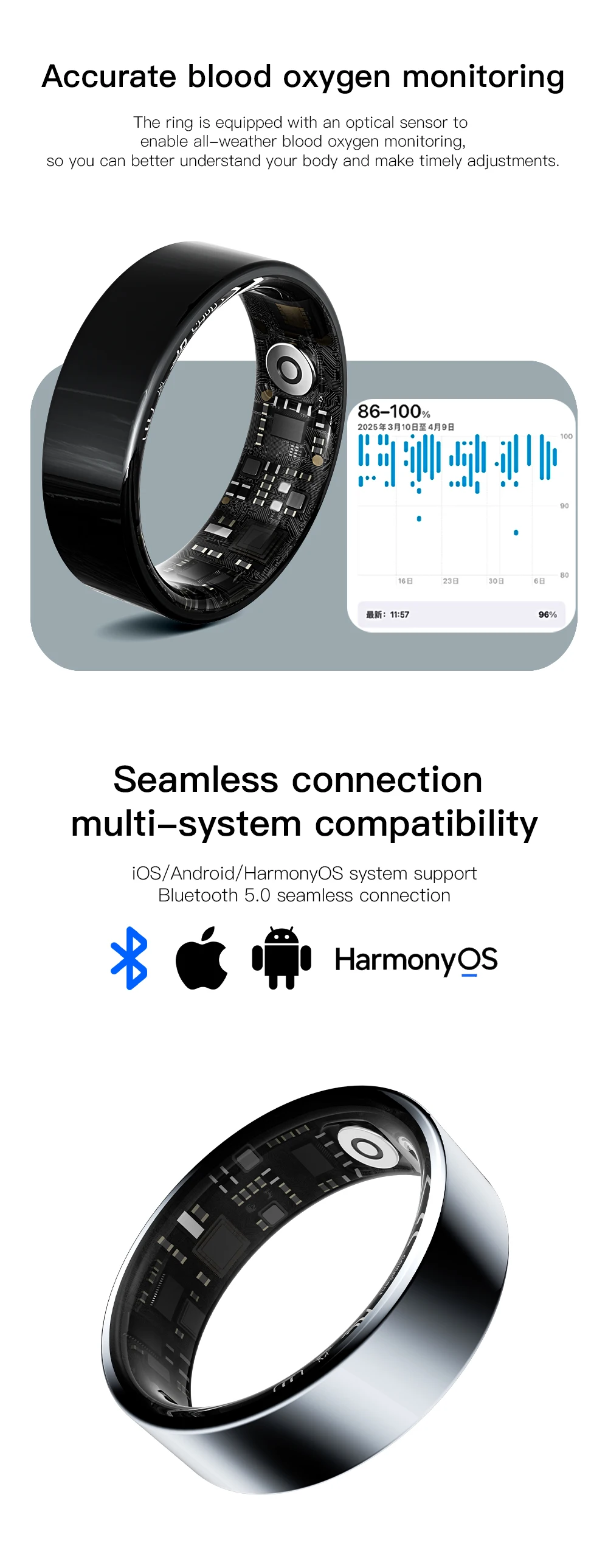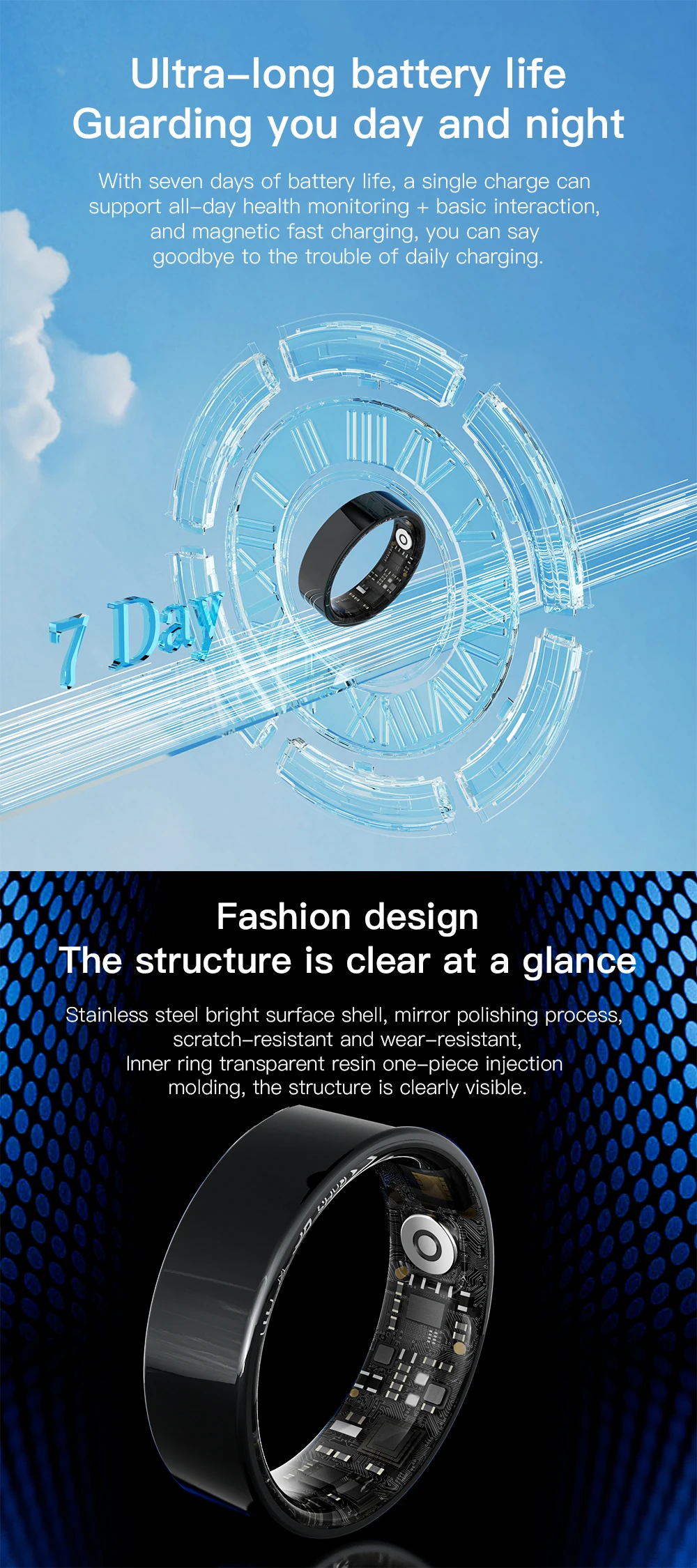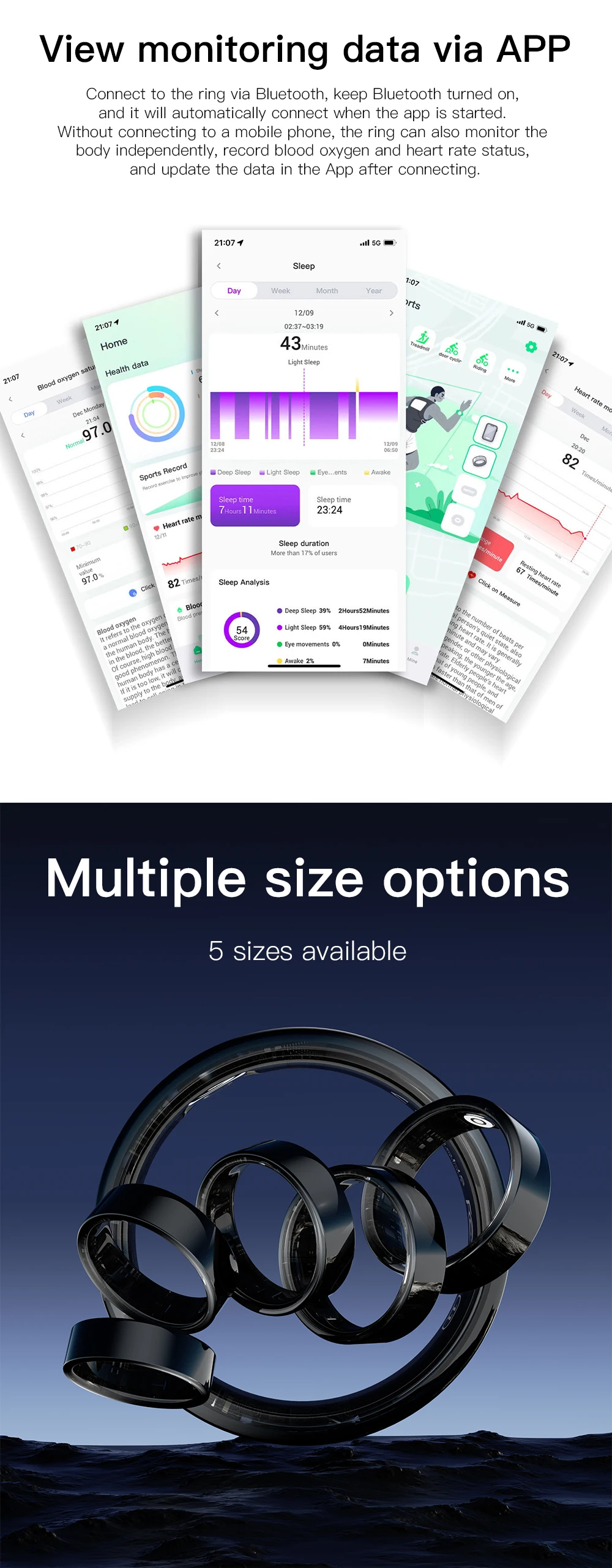 Memory: Built in 512KB(It is recommended to connect to the APP and synchronize data every day. The ring can store up to 15 data points, depending on the type and frequency of use.)