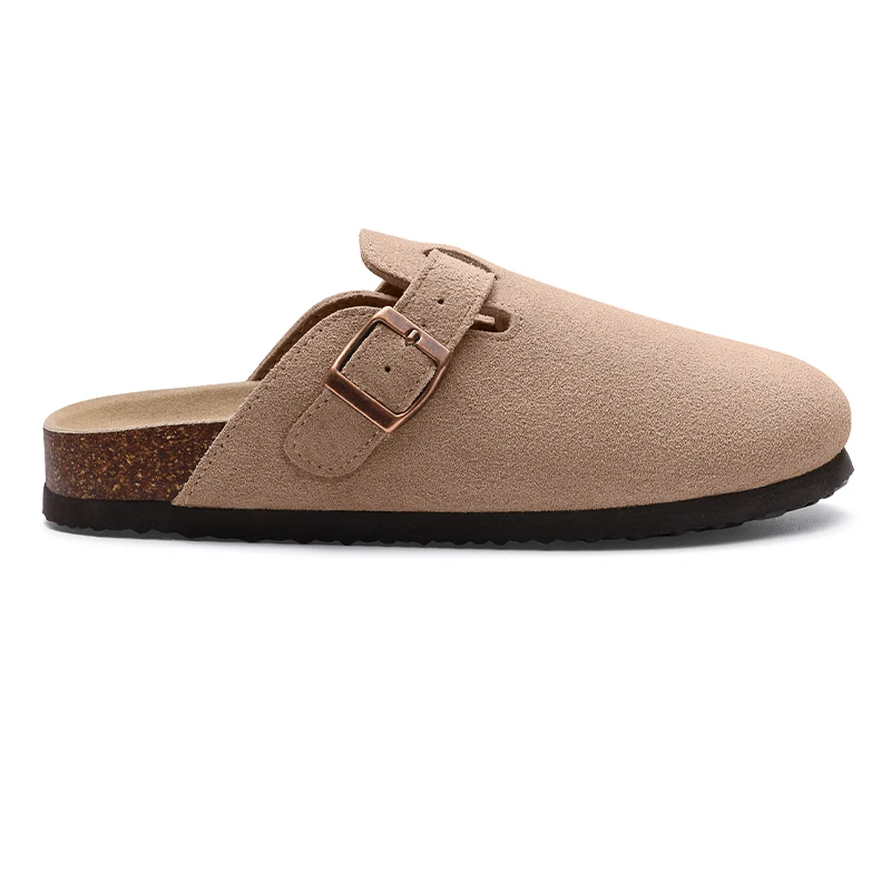 Kidmi Men’s Suede Clogs Cork Footbed Clogs for Women Soft Leather Adjustable Buckle Slip-on Potato Shoes Sandals Beach Slippers