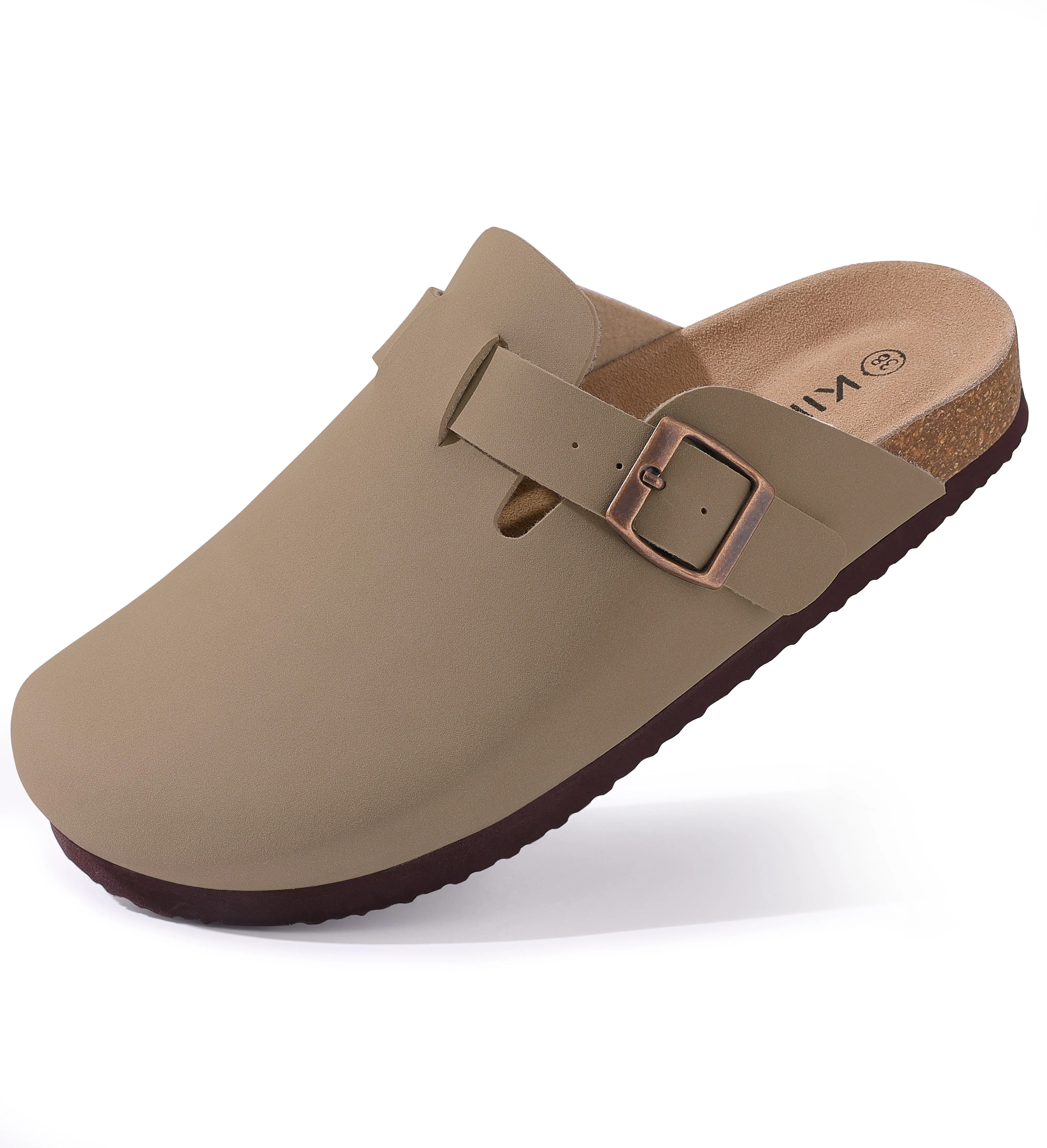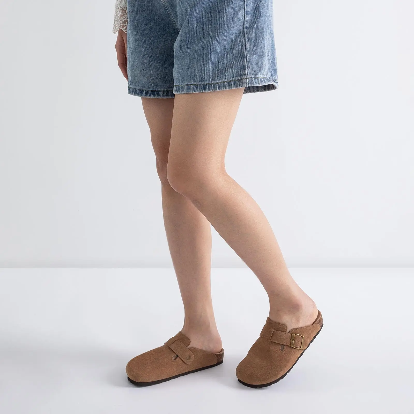 Kidmi New Genuine Suede Clogs for Women Men Clogs Soft Cork Footbed Mules Comfort Potato Shoes with Arch Support Beach Sandals