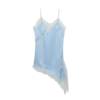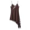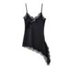 KONDALA Satin Sexy Lace Spliced Short Sling Dress Women Sleeveless Backless Asymmetric Sexy Party Dresses 2025 Autumn Lady Dress