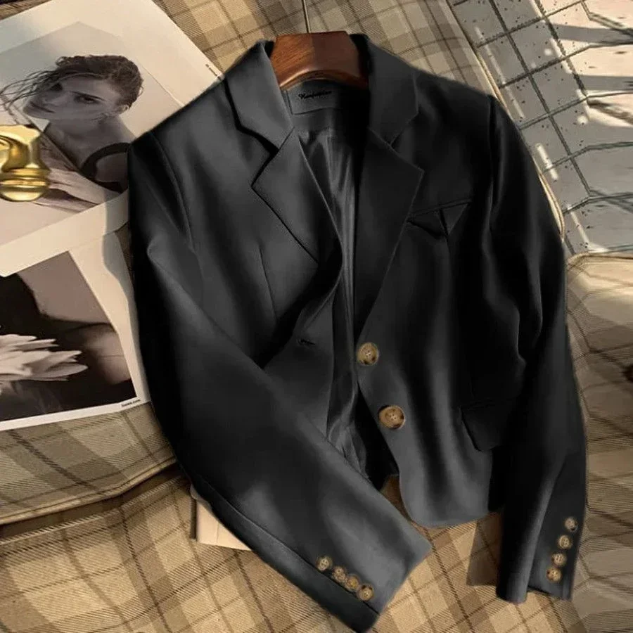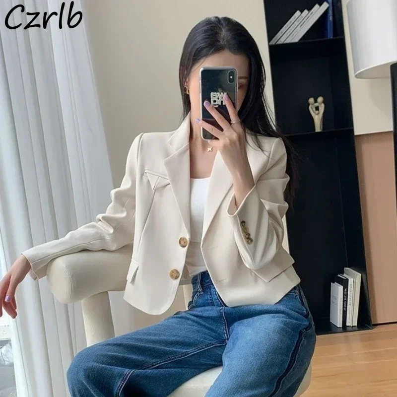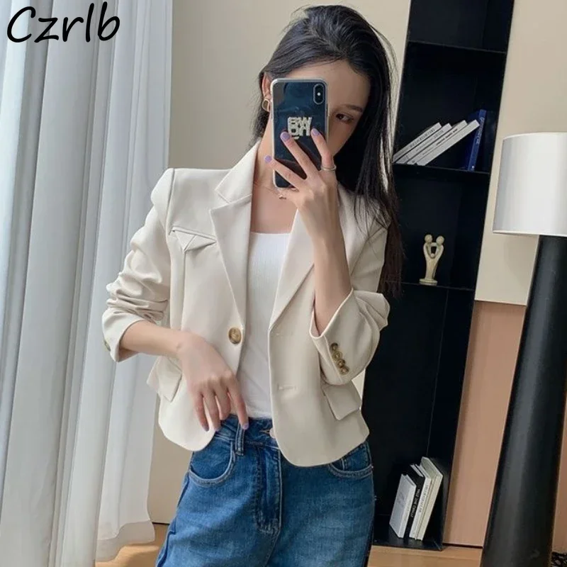 Korean Style Women Blazers Cropped New Autumn Solid Gentle Basic Defined Overcoats Harajuku Leisure Notched Fashion All-match