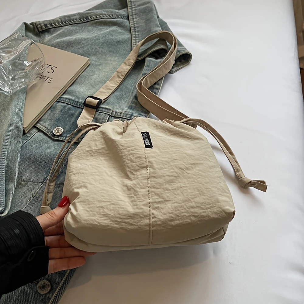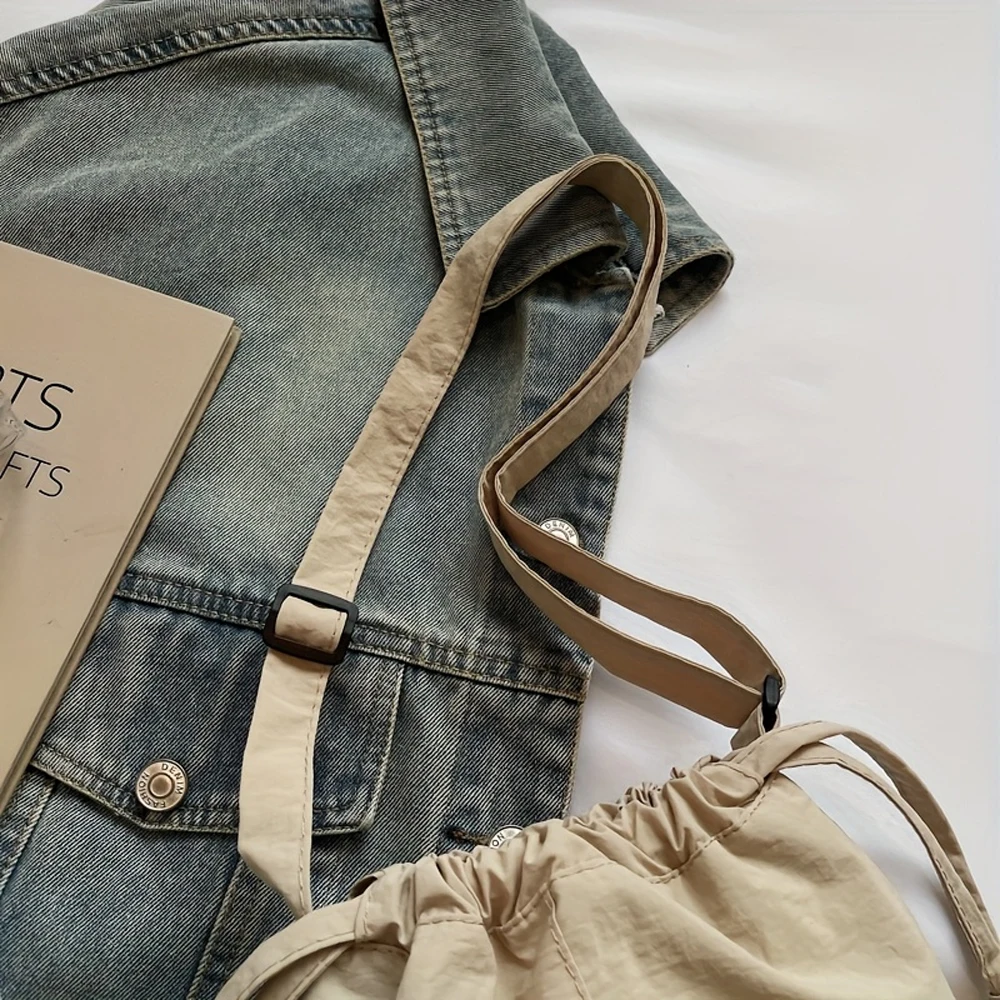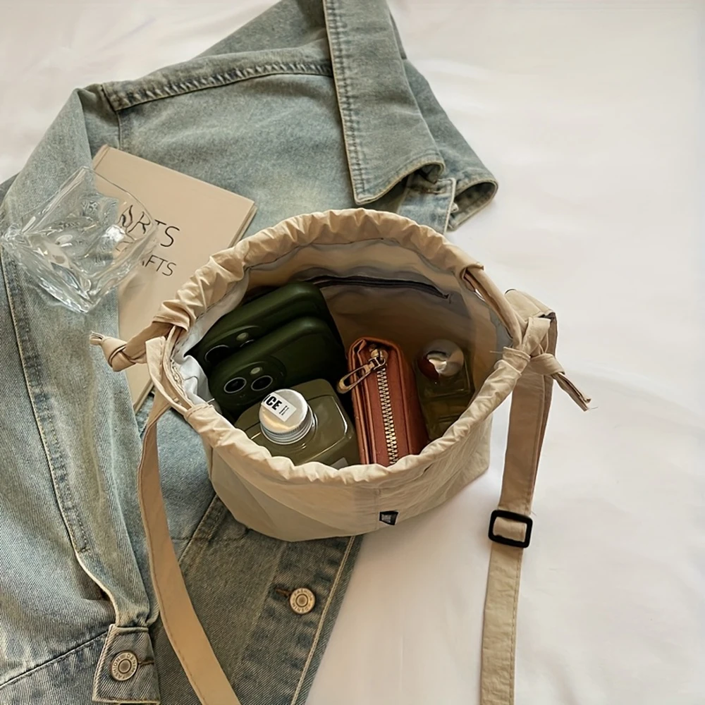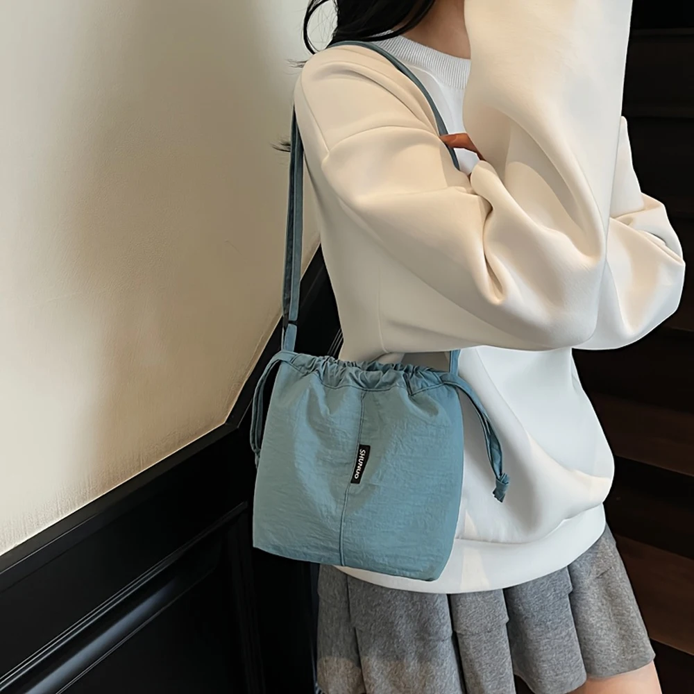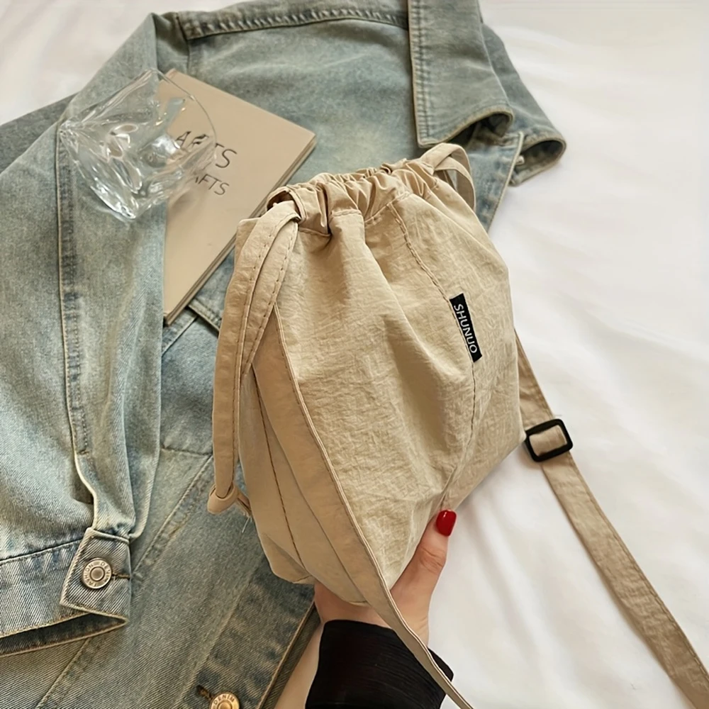 Ladies’ crossbody bag drawstring canvas bag new fashionable niche design crossbody bag pleated bucket bag