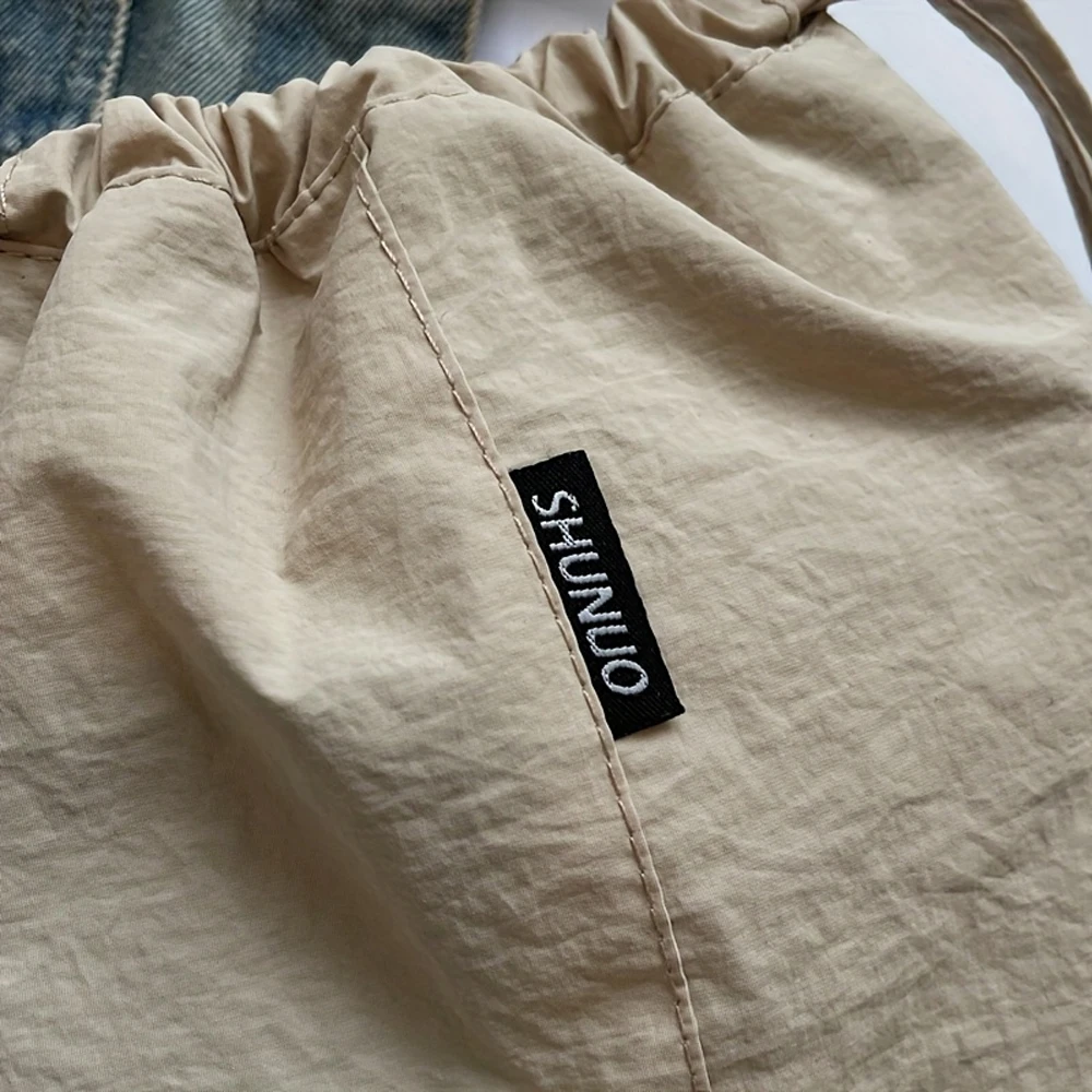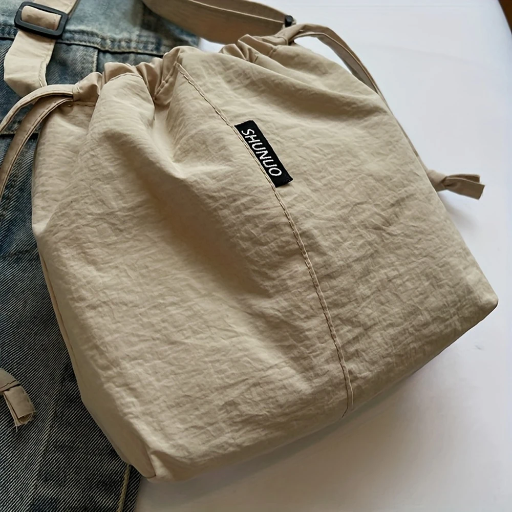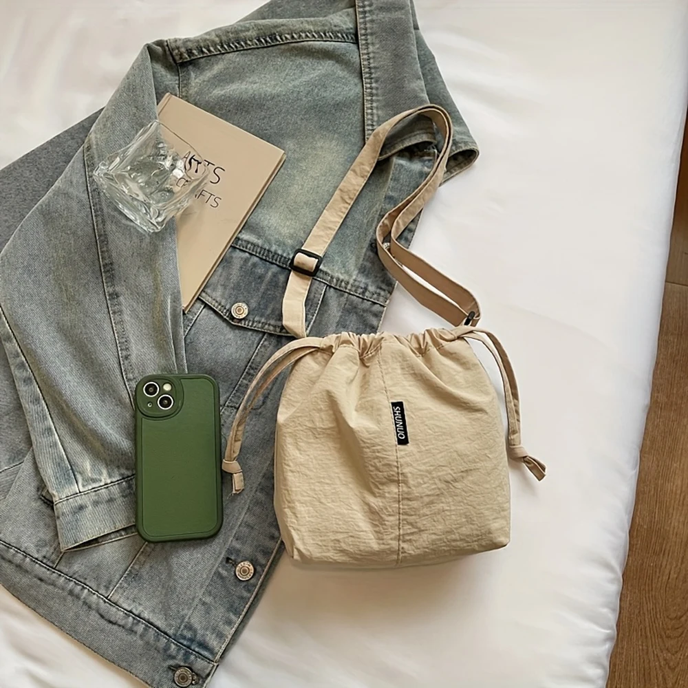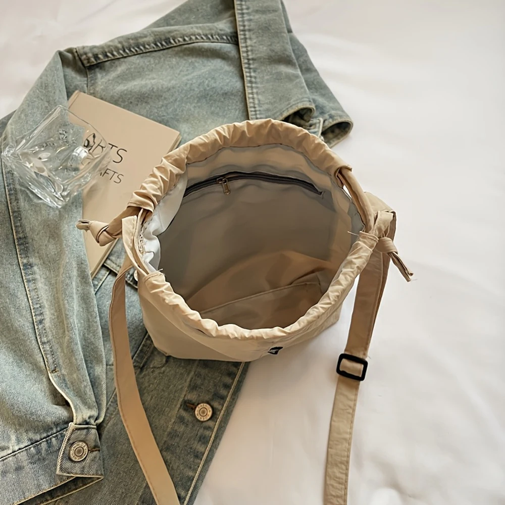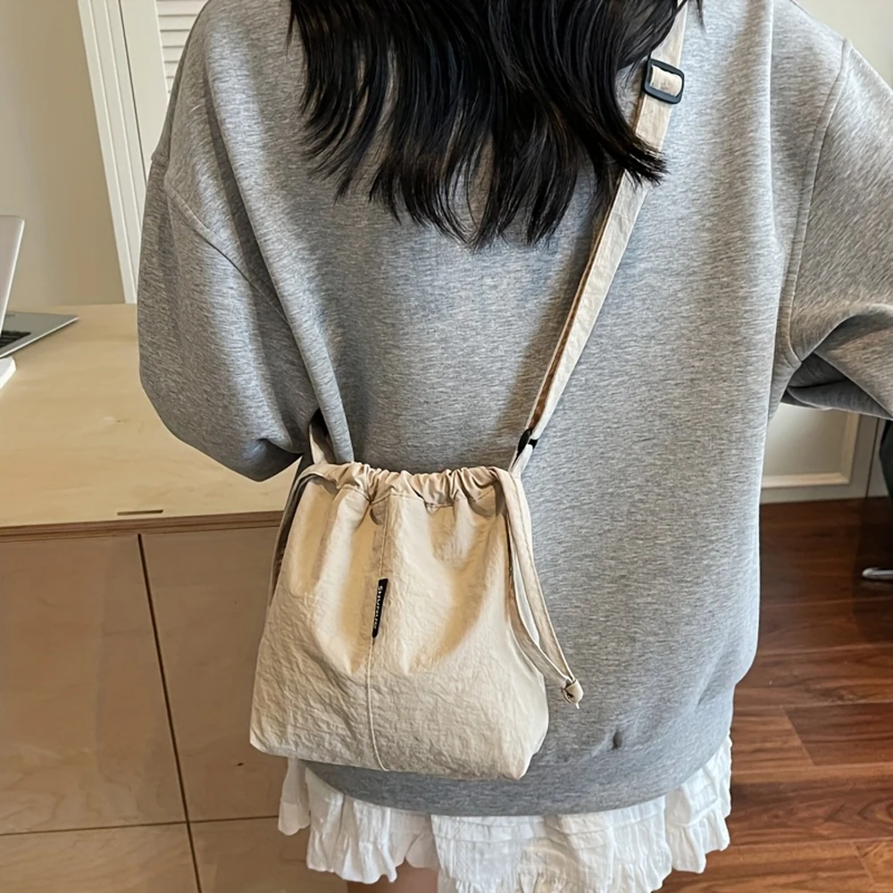 Ladies’ crossbody bag drawstring canvas bag new fashionable niche design crossbody bag pleated bucket bag