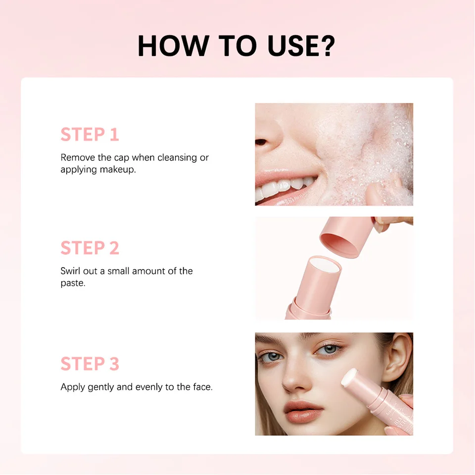 After cleansing and toning your face, or when you need it for makeup, remove the cap, twist out a small amount of the paste, and gently apply it evenly onto your facial skin.