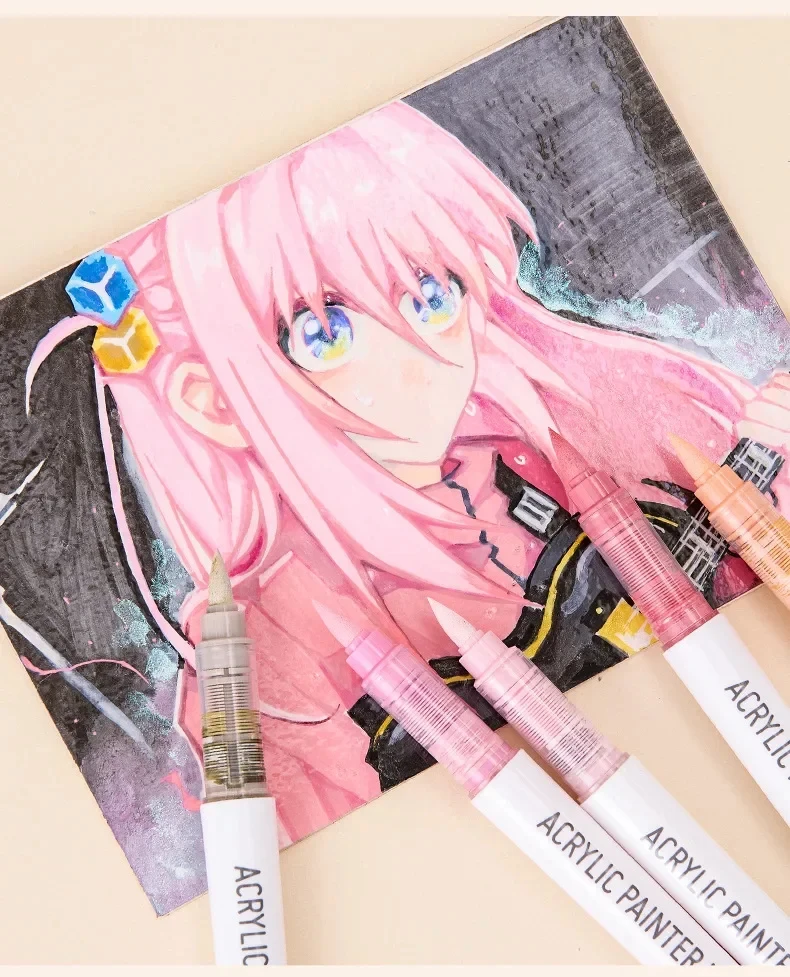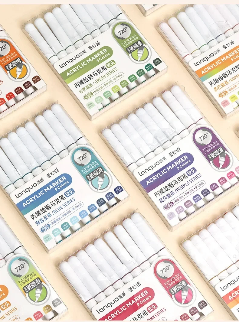 Languo 9pcs/box Soft Brush Acrylic Marker Pen Set,DIY Hand Drawn,Paint Art Markers pens,Student Graffiti Acrylic Paint Pens,M720