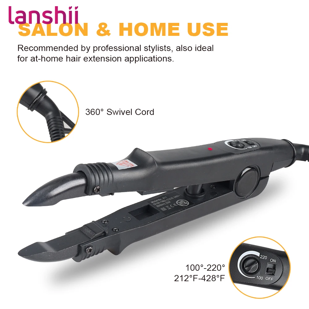 Lanshii K-Tip Fusion Hair Extension Machine Kit – Fast Heat-Up Keratin Glue Melting Wand with Accessories for 100% Remy Hair