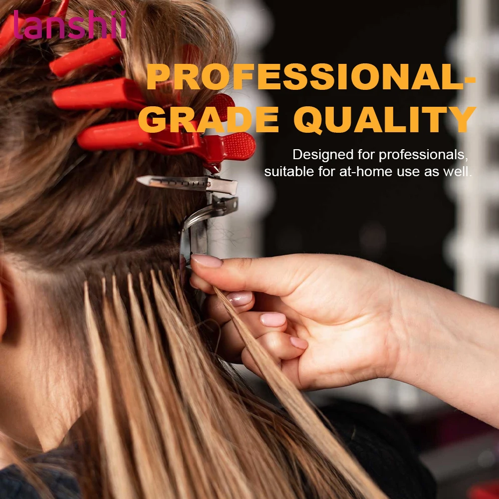 The Lanshii Professional K-Tip Fusion Hair Extension Machine Kit features fast heat-up technology to quickly melt keratin glue for strong, natural bonding. The kit includes multiple accessories to meet salon professional needs. Easy to operate, safe, and efficient, ideal for 100% Remy human hair extensions.