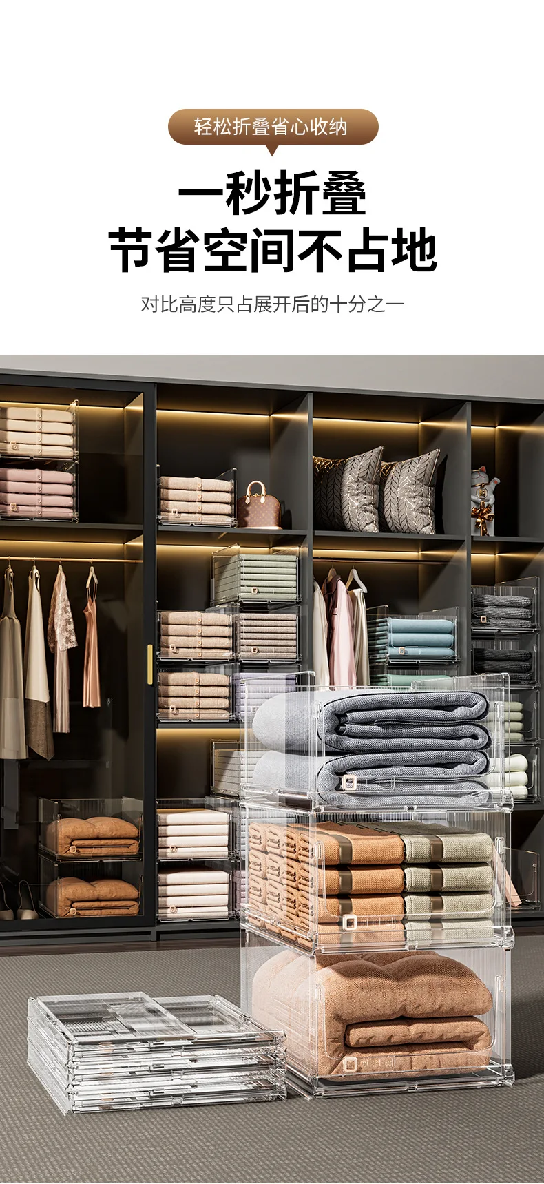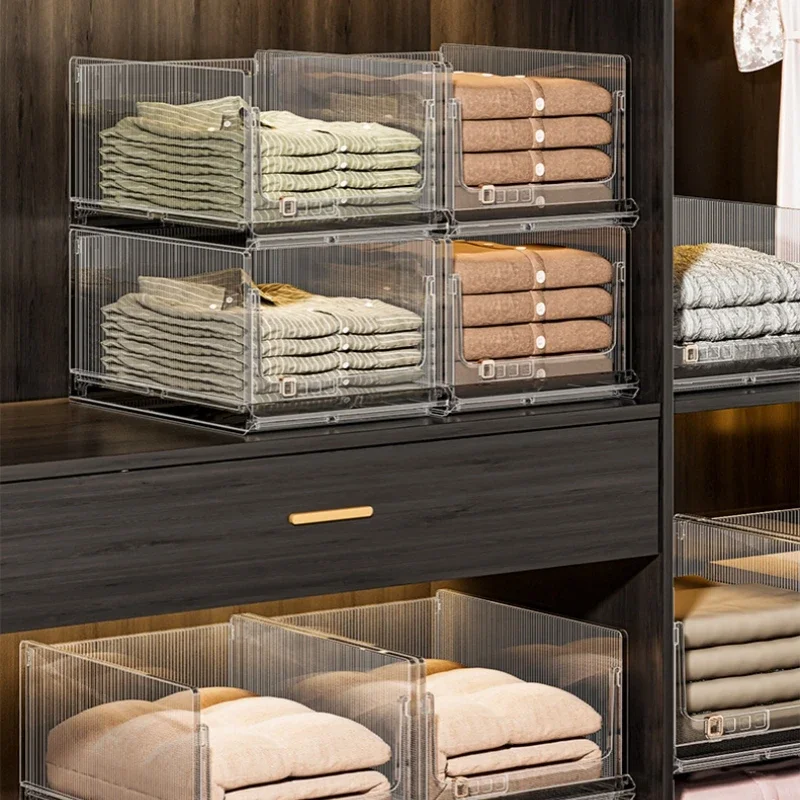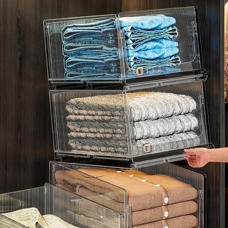 Large Capacity Foldable Storage Box Plastic Clothes Organizer Transparent Home Storage Trunk for Clothes Sundries Organizer
