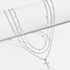 LATS Multilayer Pearl Cross Love Heart Pendant Necklaces for Women Gold Color Fashion Collarbone Neck Chain 2024 Trend Jewelry