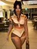 Laxsesu Irregular Contrast Romper Women Knit Stretch Polo Neck Single-Breasted Shorts Sleeve Skinny Slim Playsuits Streetwear