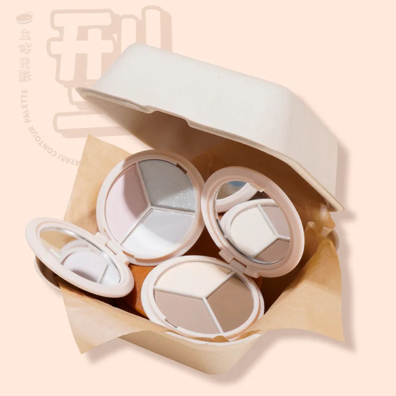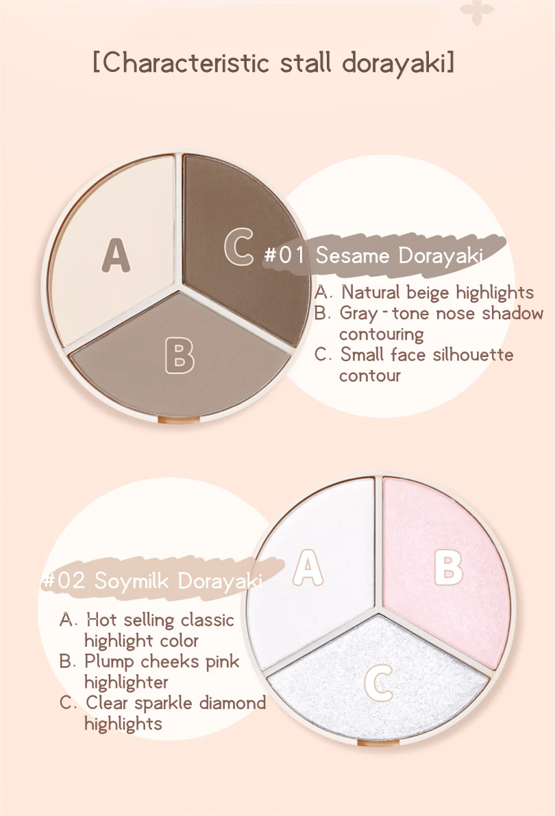 Leemember Tri-color Face Shadow Palette Dorayaki Bronzer Highlighter Contouring Blush Cream Mousse Texture Makeup Cosmetics