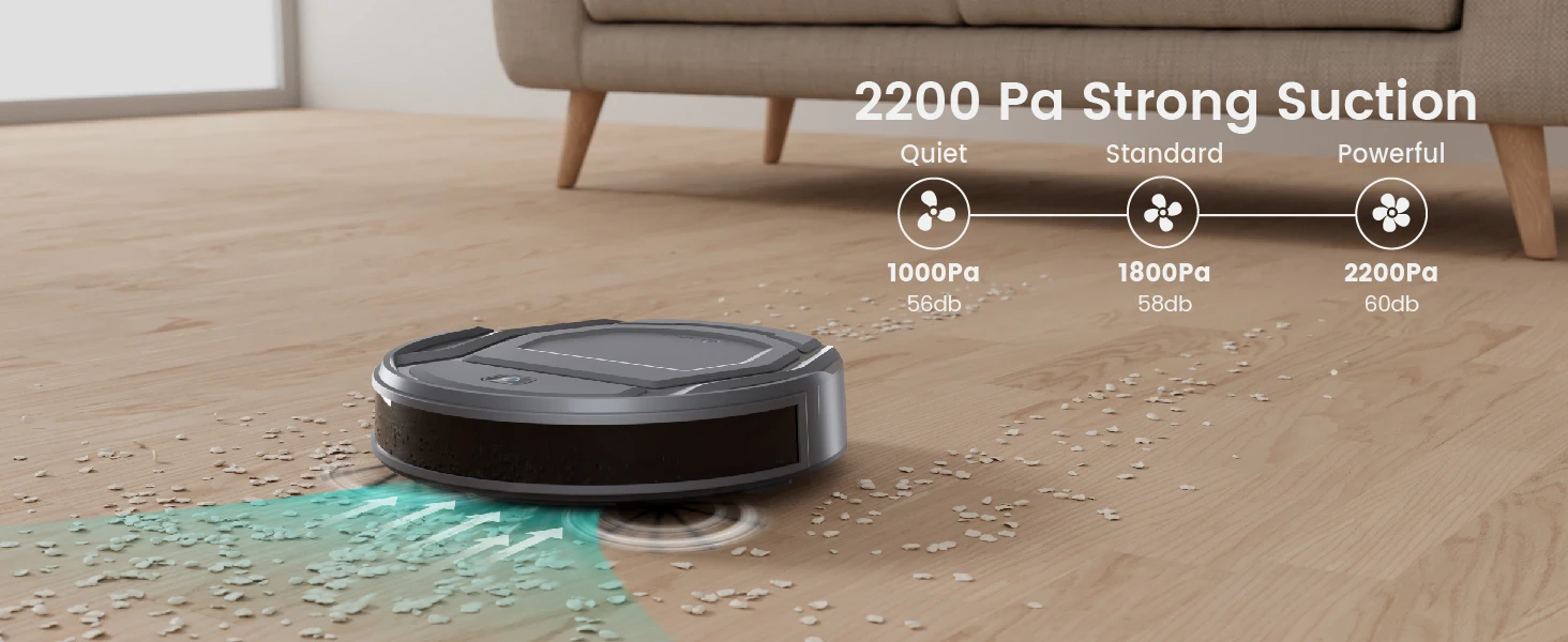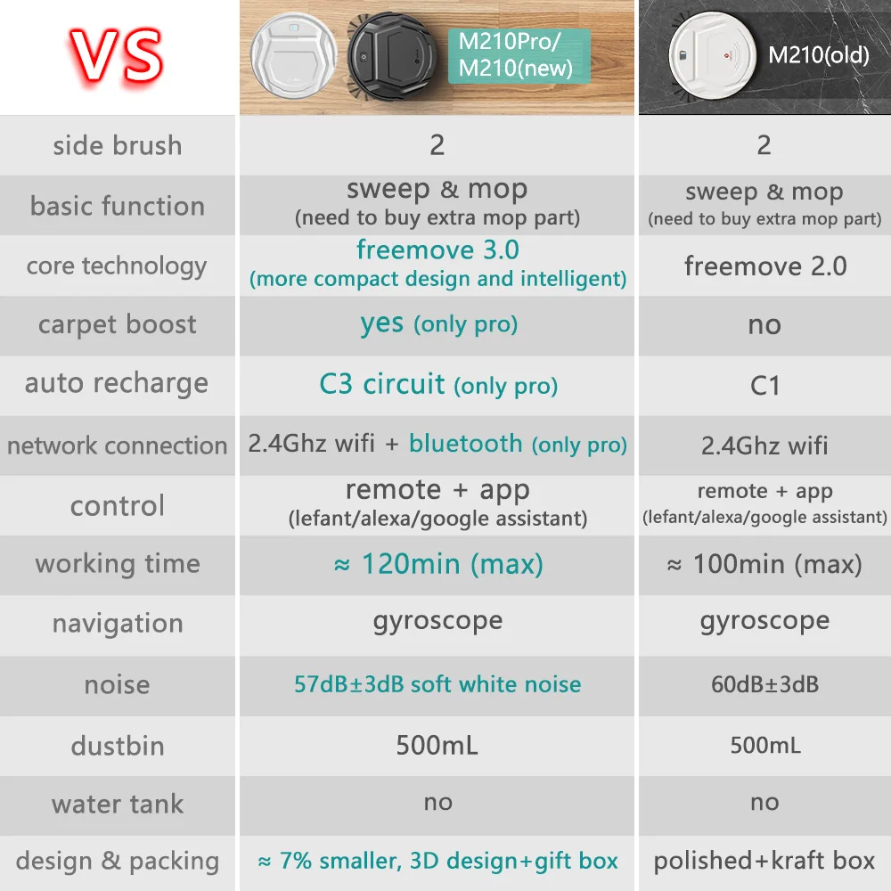 The M210 Pro robot vacuum can clean up to 120 minutes / 1300 Square Feet(Quiet mode) per charge. Enjoy a completely clean on one charge.