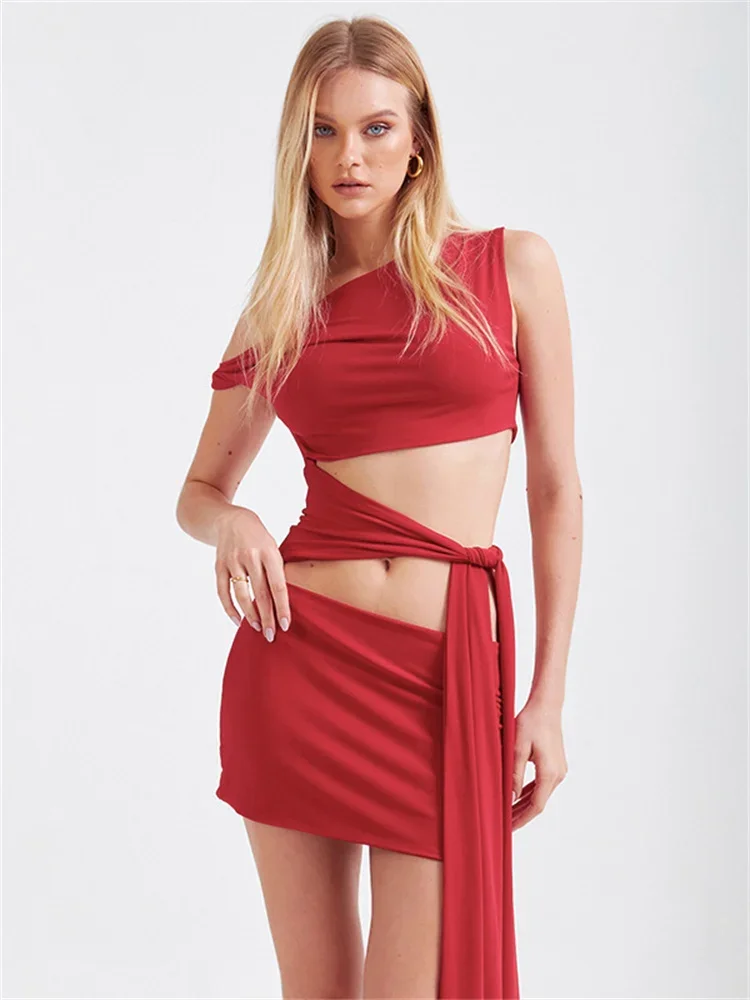 Leosoxs Irregular Hollow Dress Women Knot Off-The-Shoulder Bandage Biased Collar Sexy Fit Sleeveless Midnight Mini Bodycon