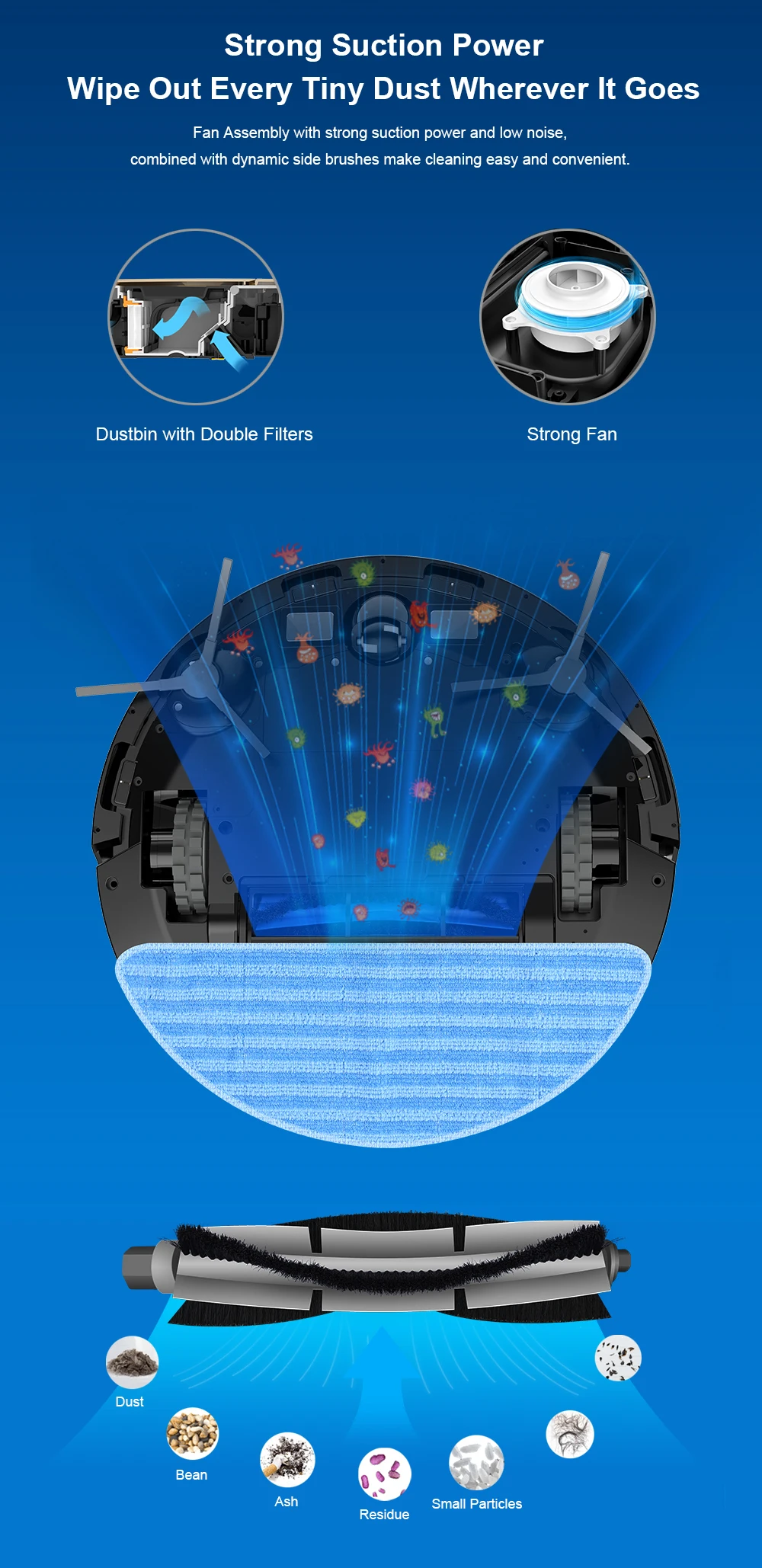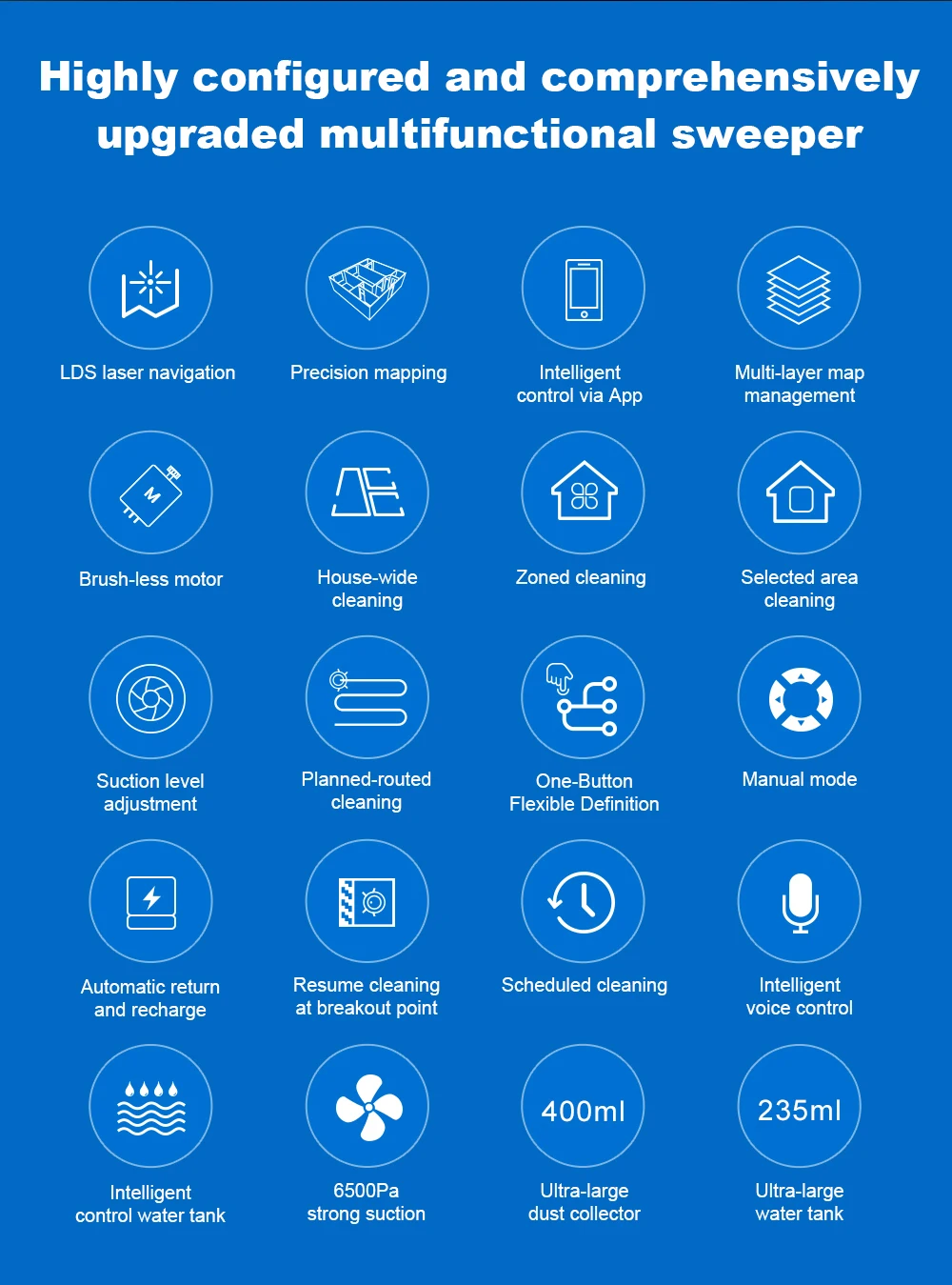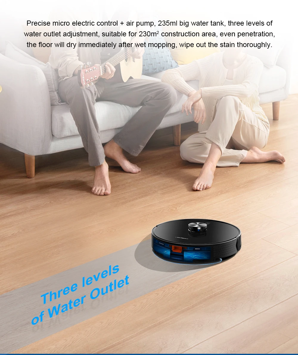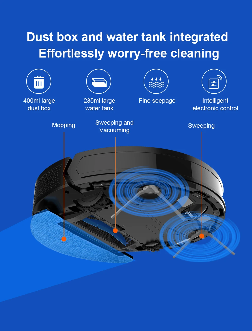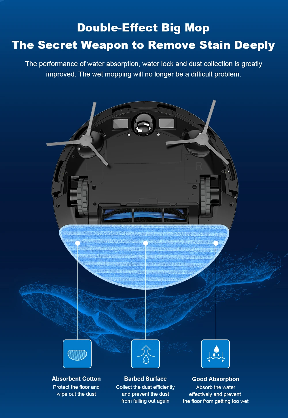 2.Unique wet mopping function: It adopts the latest method of mopping the floor, Y-shaped back and forth wiping, this make the deepest cleaning compared to other normal cleaning. And the robot equipped a large-capacity electronically controlled water tank, it can adjust the water output.