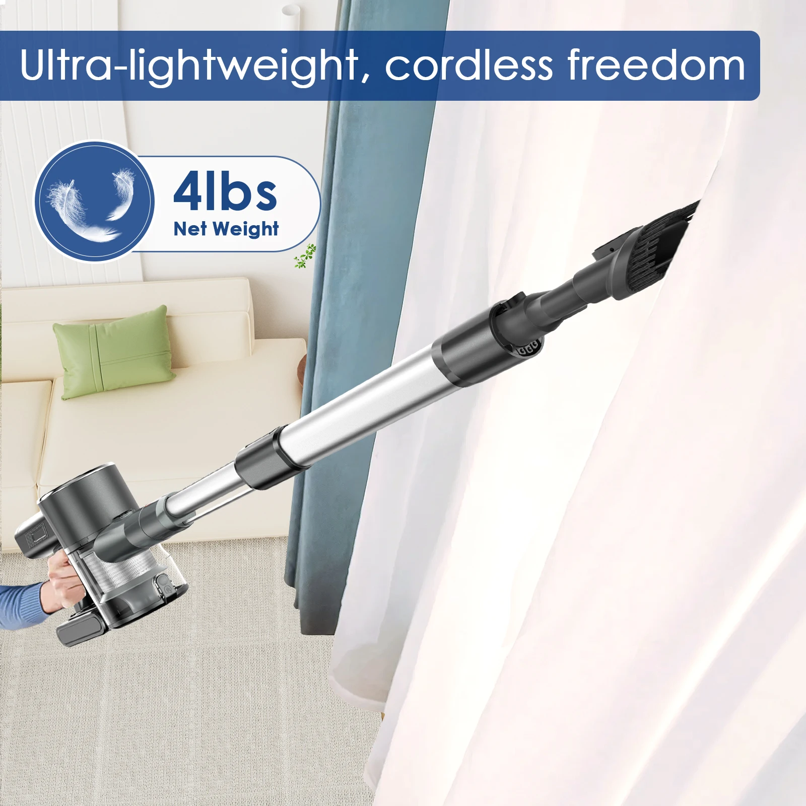 Lightweight Cordless Stick Vacuum Cleaner Rechargeable LED Headlight HEPA Filtration 11Kpa Max for Carpet Floor Pet Hair for Car