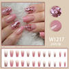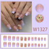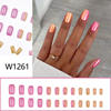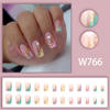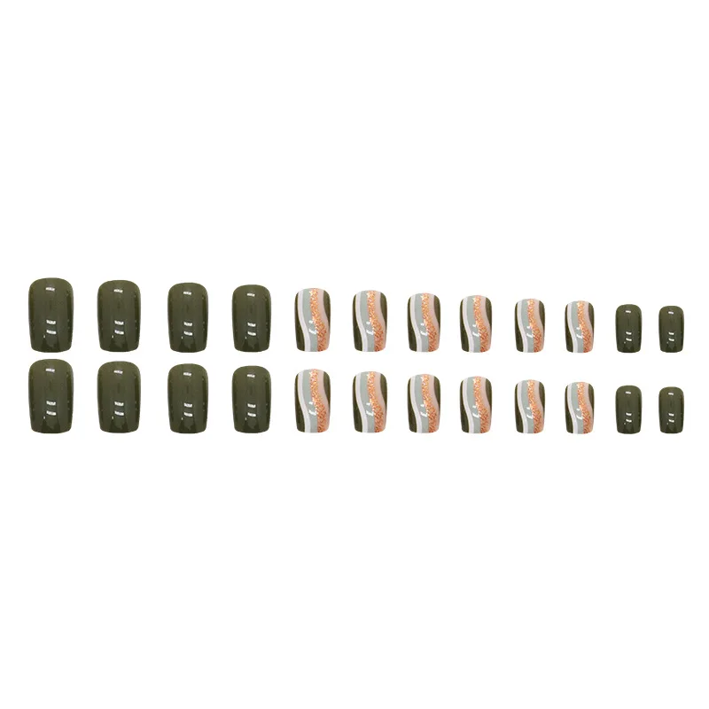 Line Army Green 24 Pcs Press on Nails Pink Gradient Fake Nails Glossy Artificial Finger Manicure Reusable False Nails
