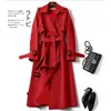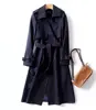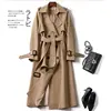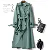 Long Trench Coat Women Lace Up Button Coats Full Sleeve Turn Down Collar Splice Jackets Solid Pockets Office Lady Streetwear