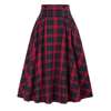 Loose Fit Skirt Elegant Retro Ruffle Maxi Skirt with Colorblock Plaid Print Soft Pockets for Women High Elastic Waist for Party