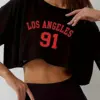 Los Angeles Number 91 Graphic Round Neck Sports Crop T-shirt Crew Neck Casual Running Workout Crop Top Women’s Activewear