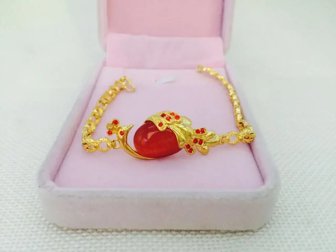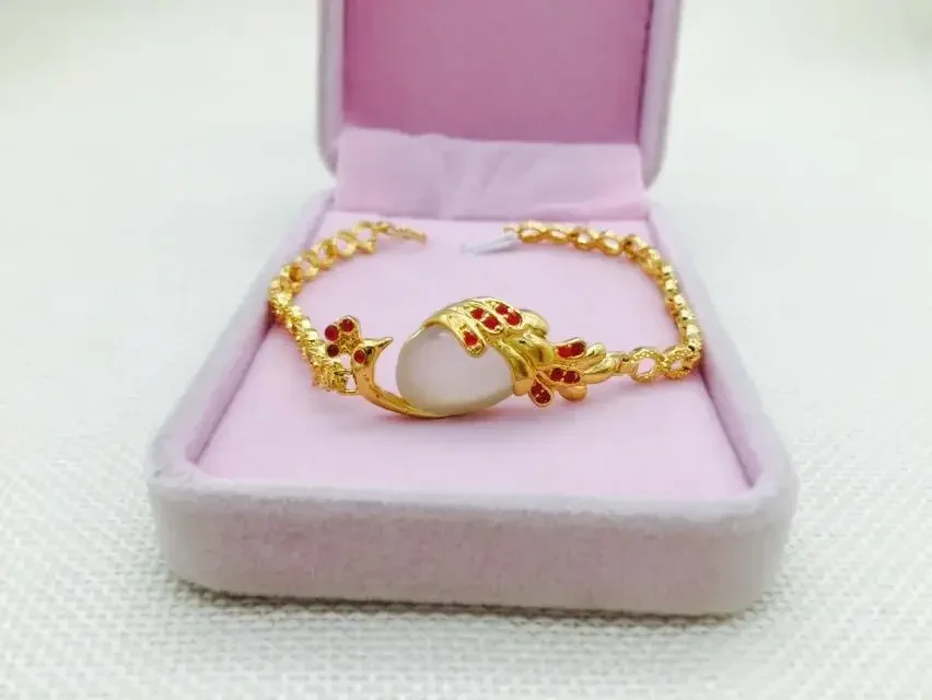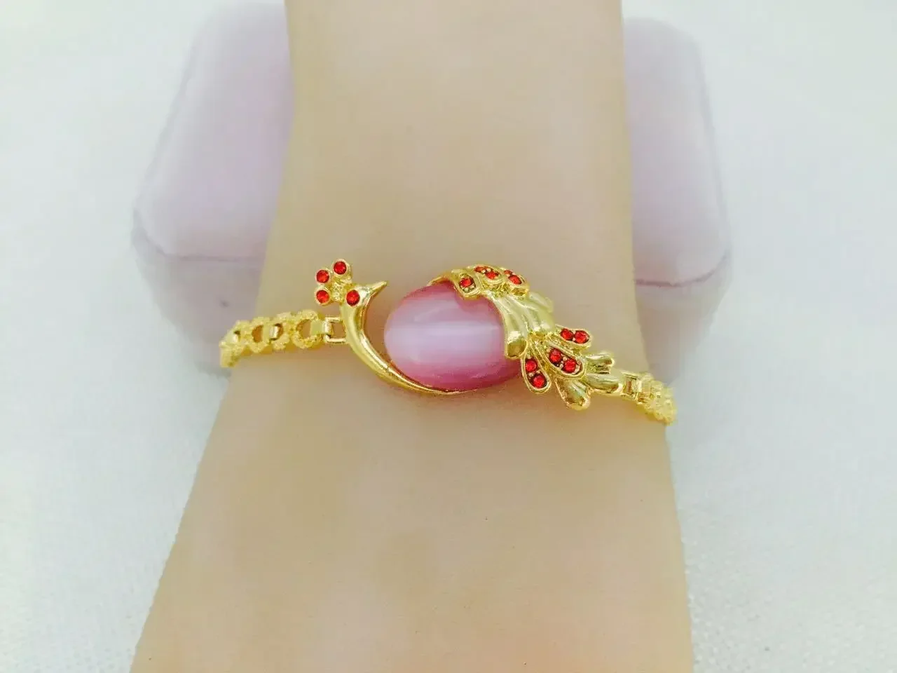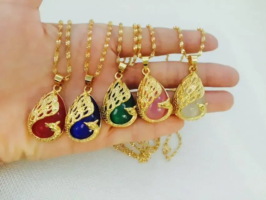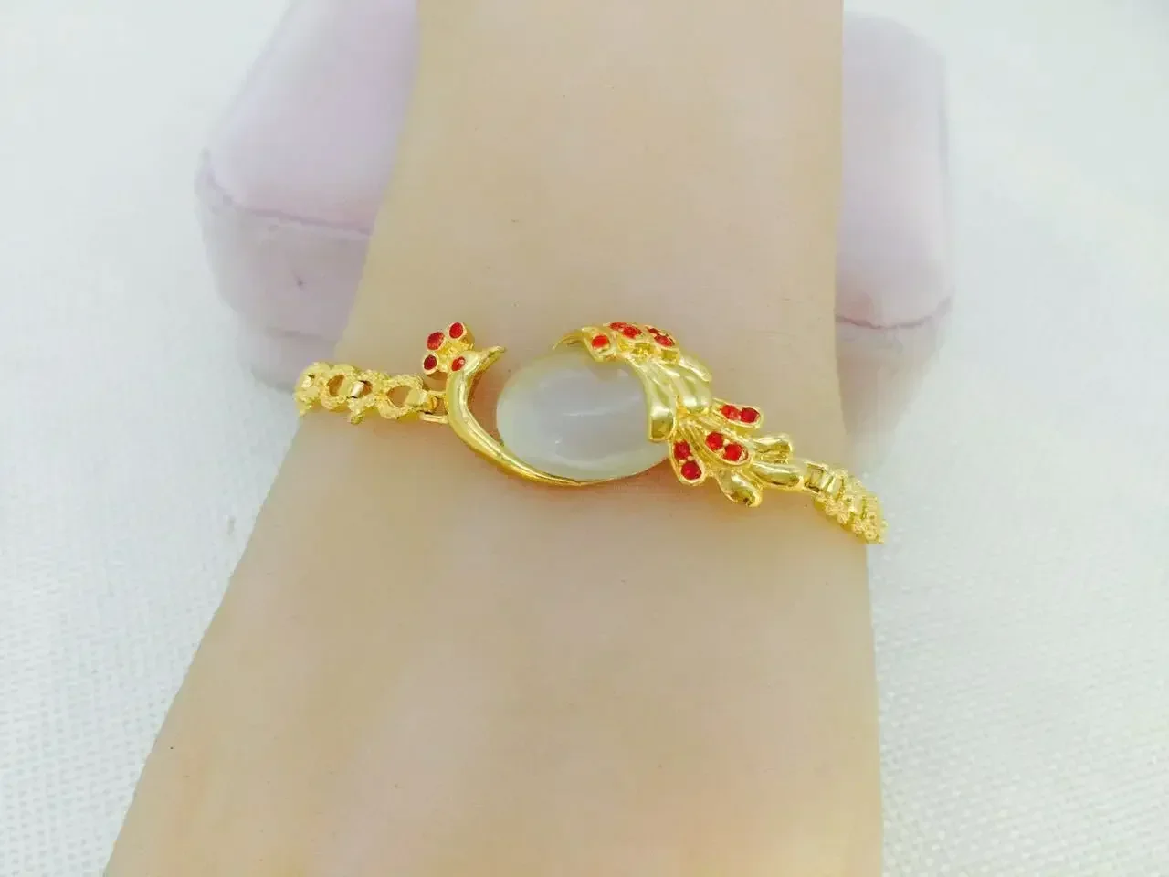 Luxury 24K yellow gold 9999 real gold Ladies Necklace Bracelet Peacock two-piece Pendant Cat’s Eye AU750 Gold jewellery