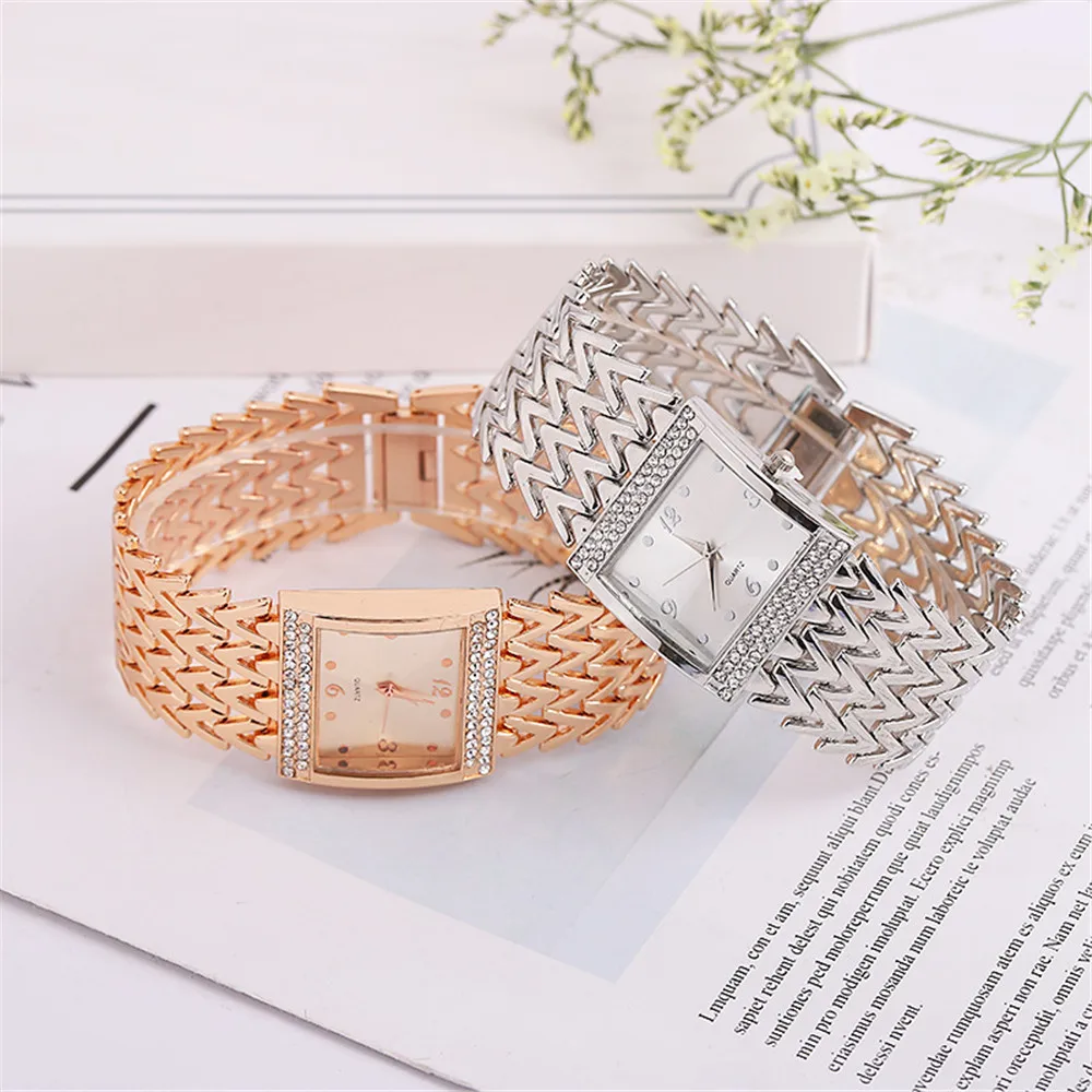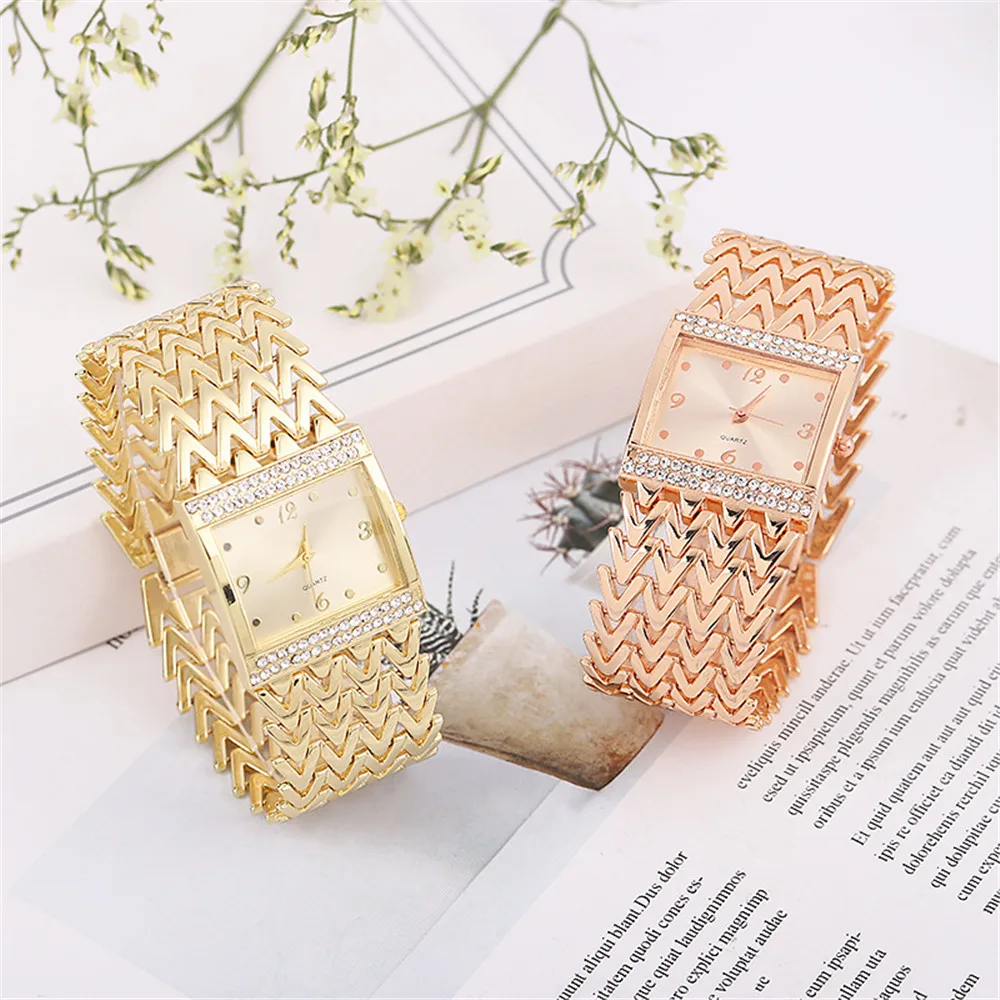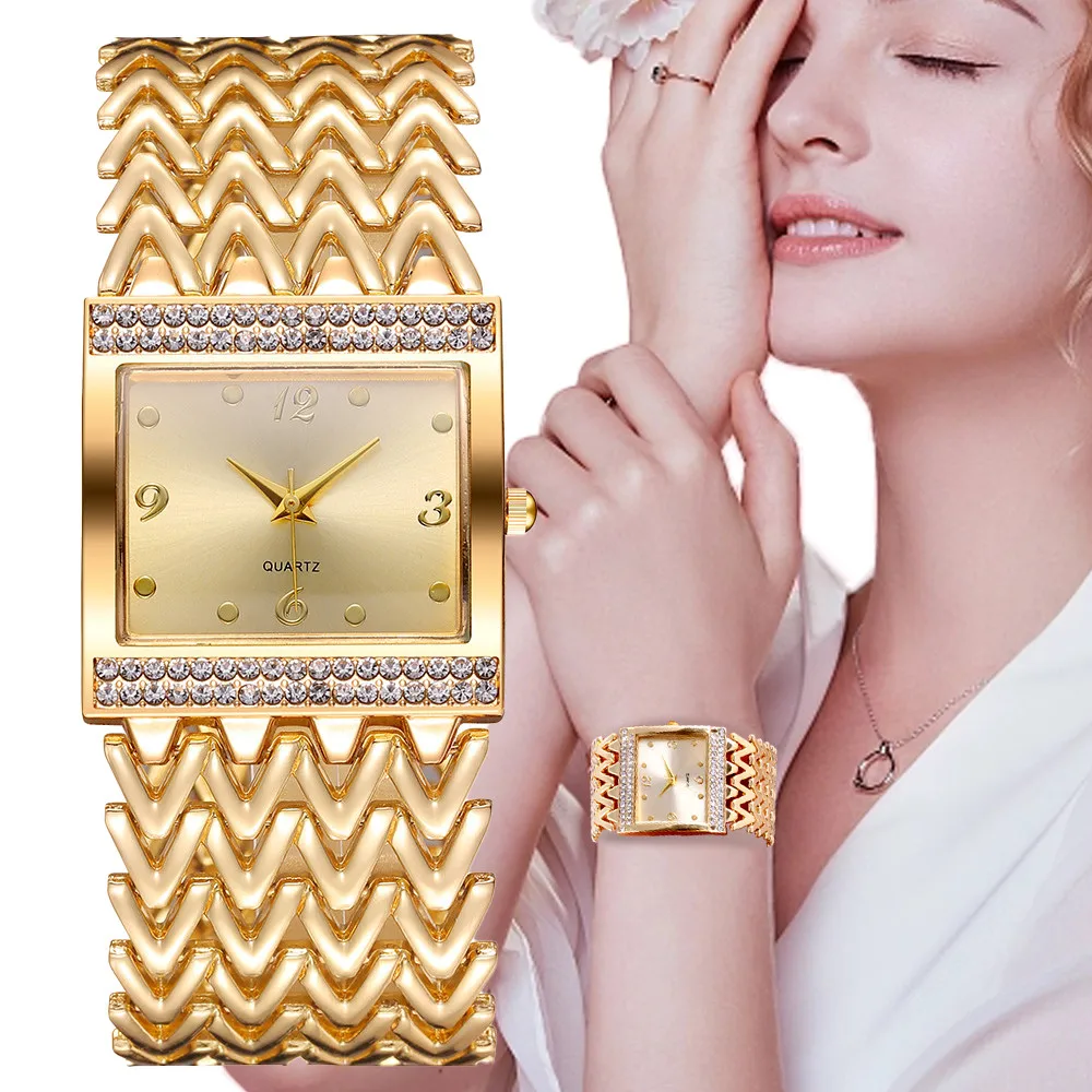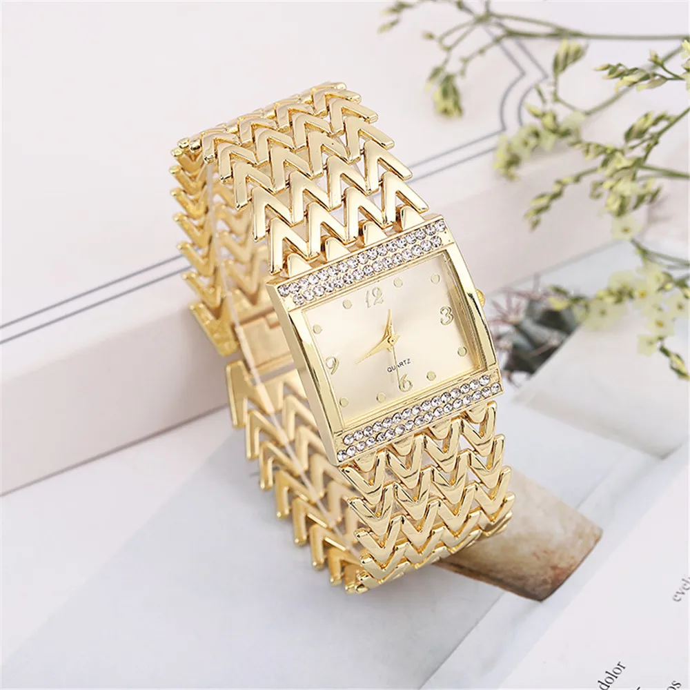 Luxury Golds Ladies Bracelet Watch Hot Fashion Simple Square Diamond Ladies Quartz Watches Stainless Steel Women Clock Dress