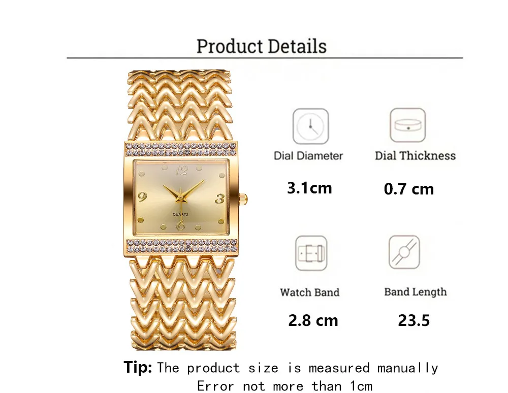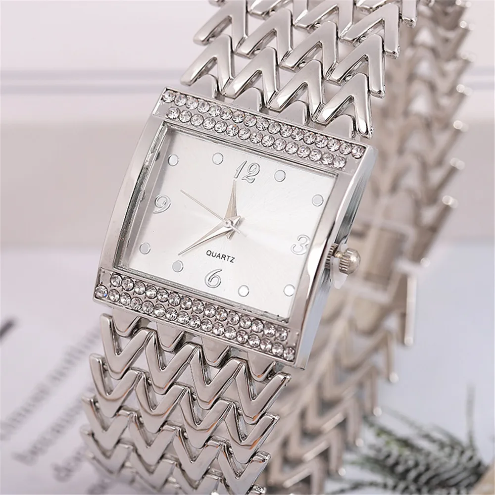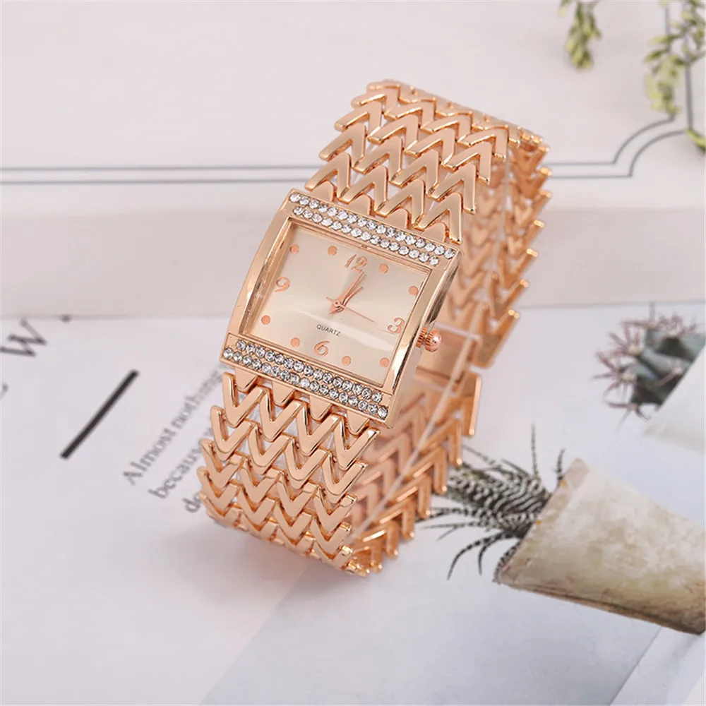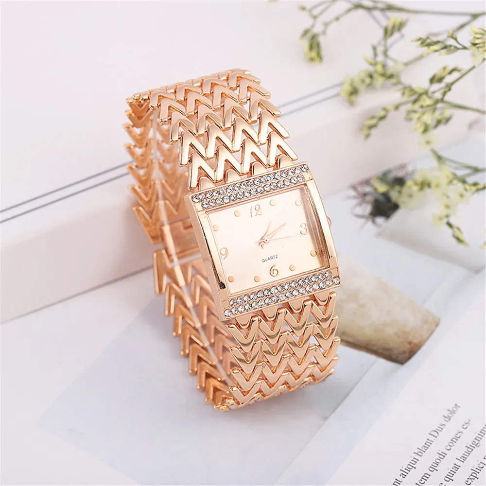 Luxury Golds Ladies Bracelet Watch Hot Fashion Simple Square Diamond Ladies Quartz Watches Stainless Steel Women Clock Dress