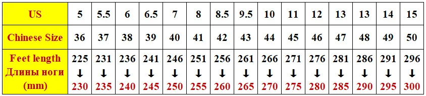 For example, If your foot length is 250 mm,you should choosethe size 7.