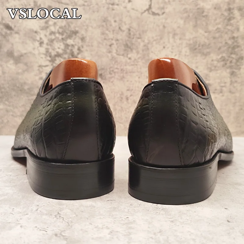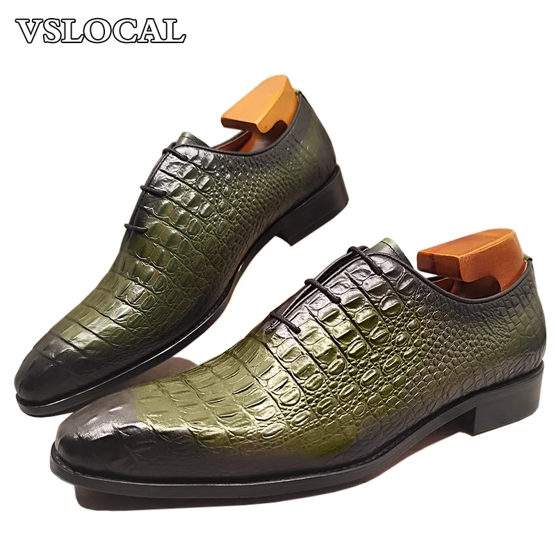 Luxury Men Oxford Shoes Green Black Croco Print Casual Mens Dress Shoes Lace up Wedding Office Genine Leather shoes men