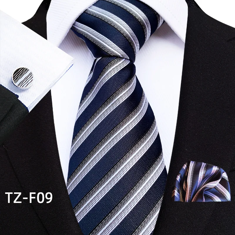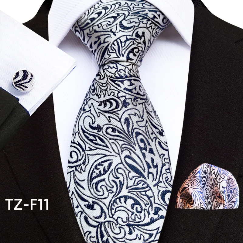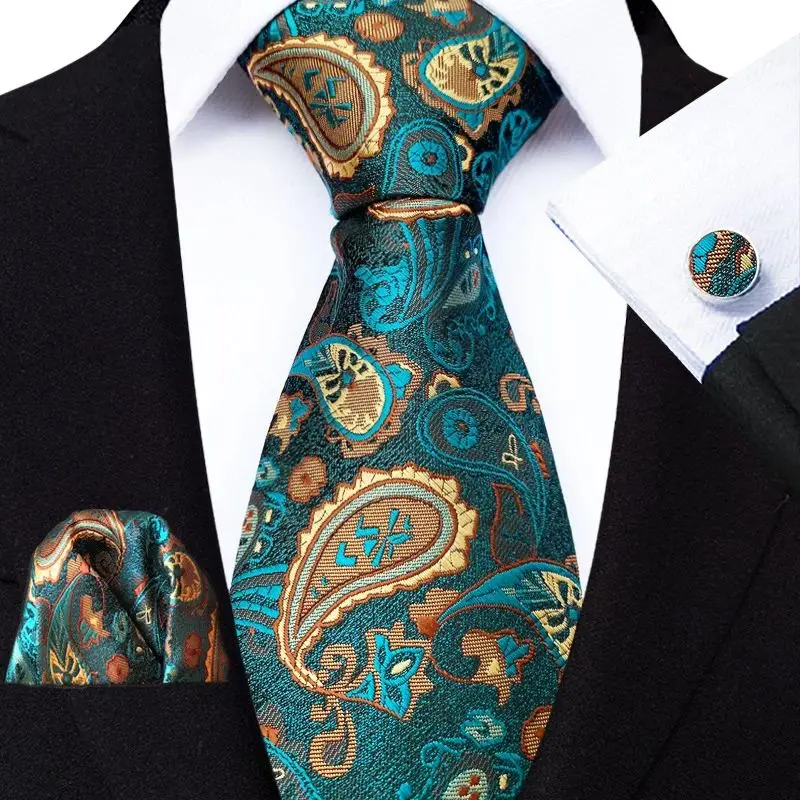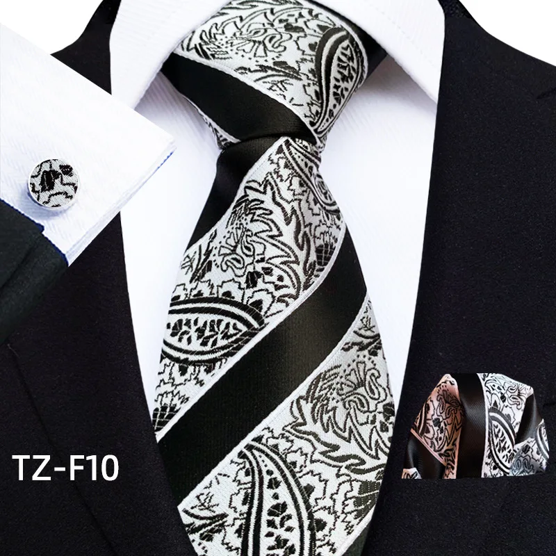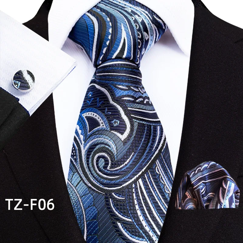 Luxury Tie For Man Suit Set Paisley Necktie Handkerchief Set Plaid Fashion Cufflinks Pocket Square Business Wedding Party Gravat