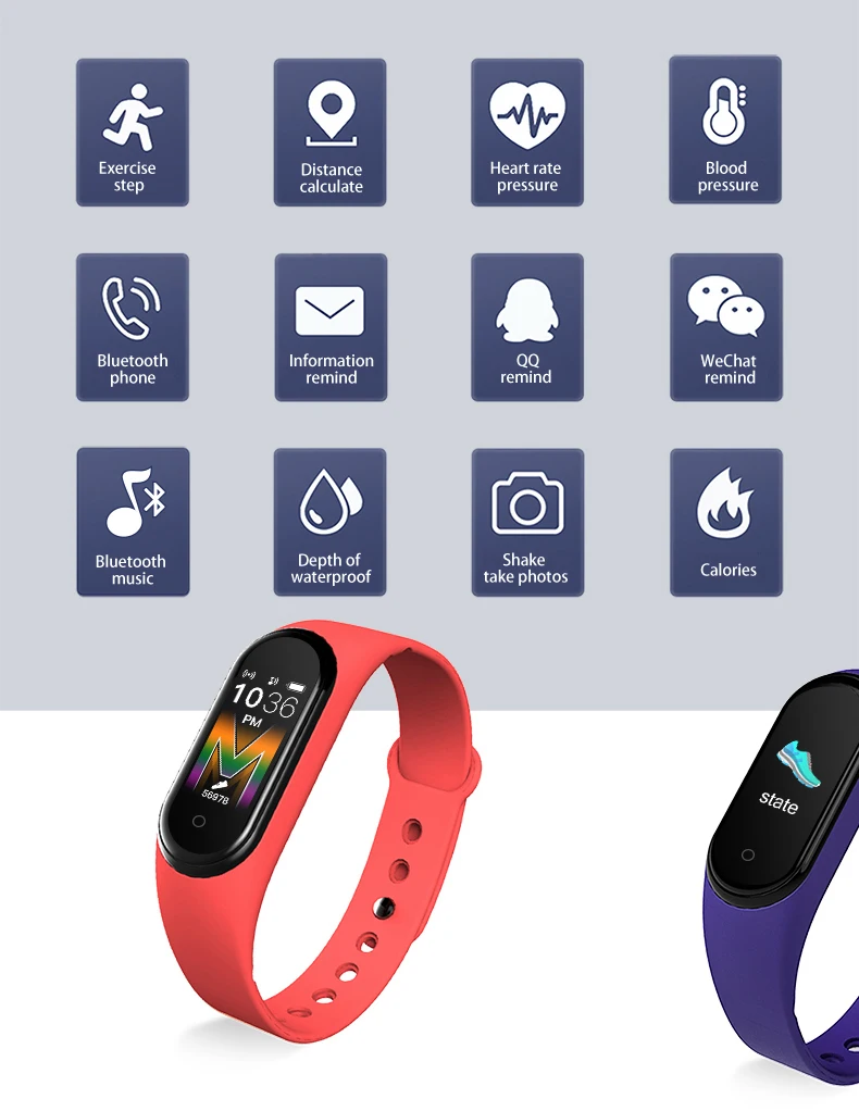 M5 Smart Bracelet Men Fitness Smart Wristband Women Sports Tracker Smartwatch Bracelet M5 Band Multifunction Color screen Band