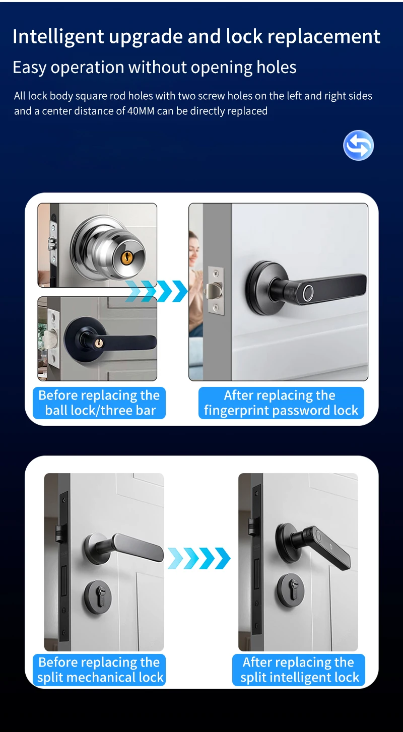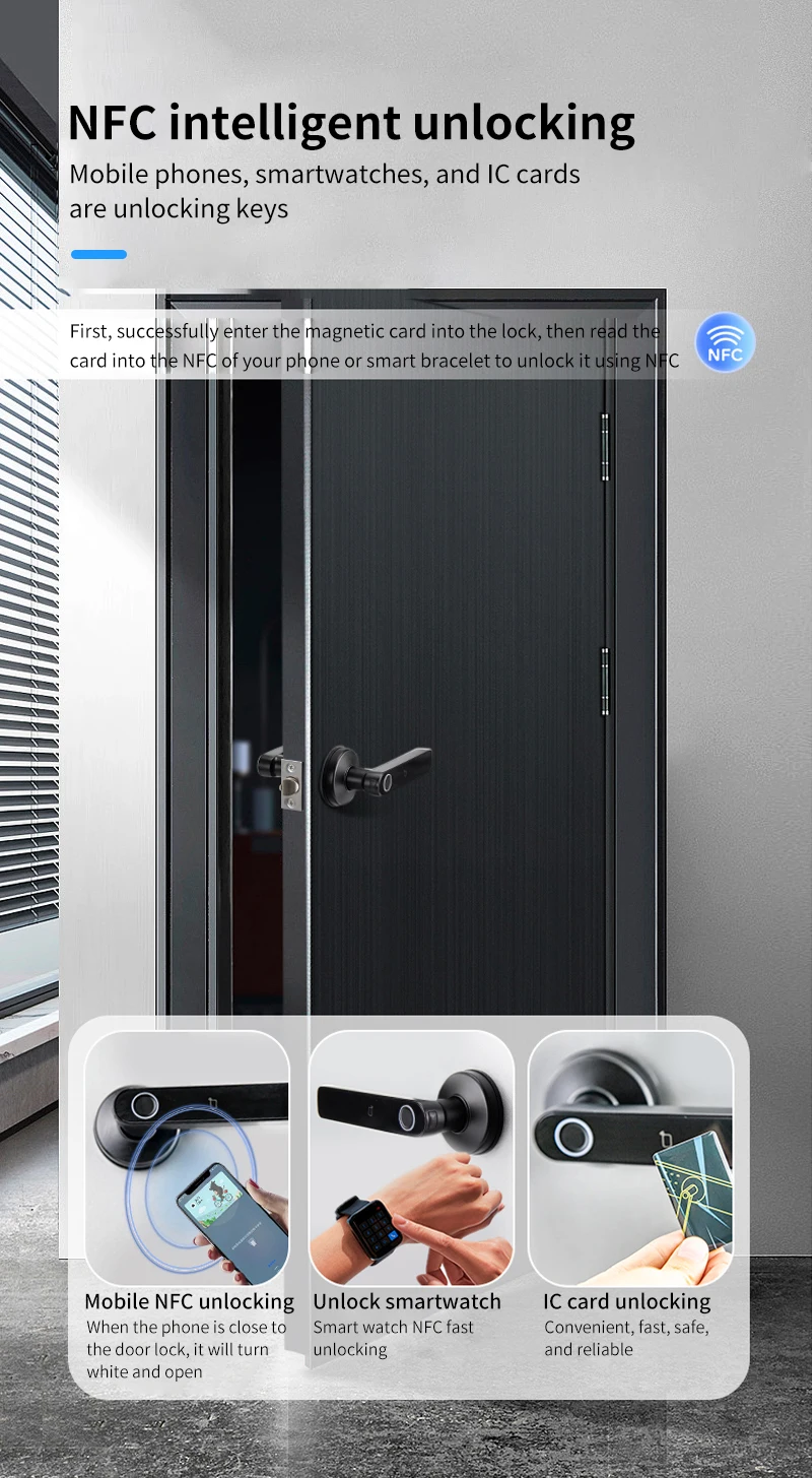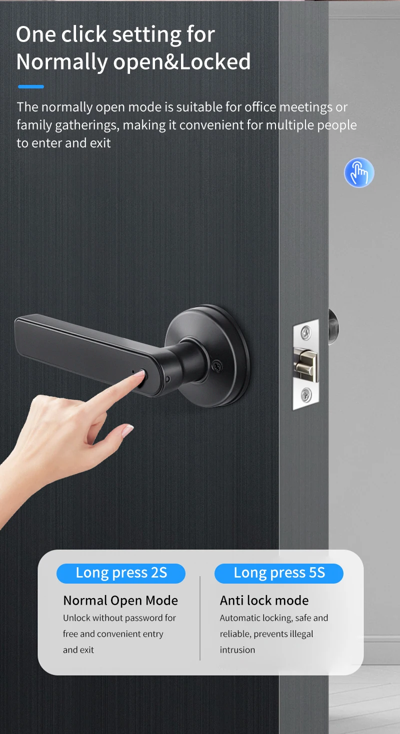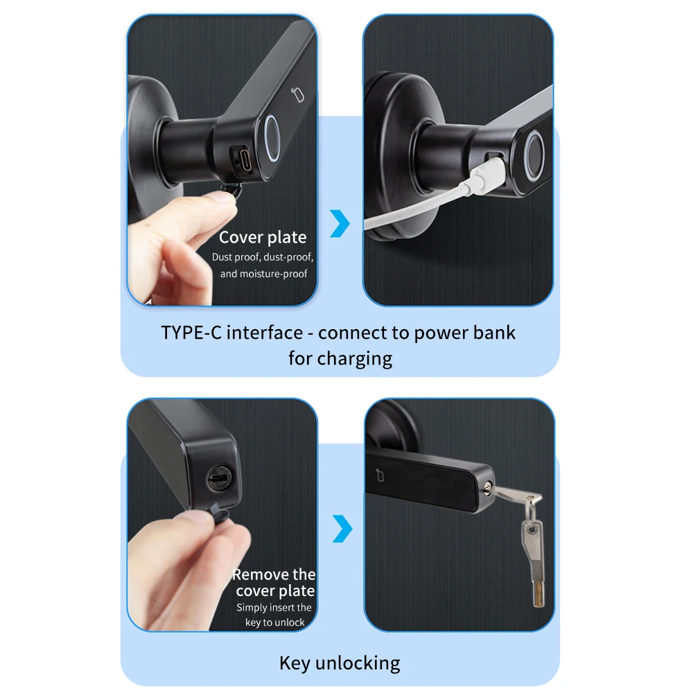 Lock Unlock mode:APP BLE, passwords, fingerprints, mechanical keys,IC Card(Optional)/Gateway Remote Unlock(Optional)