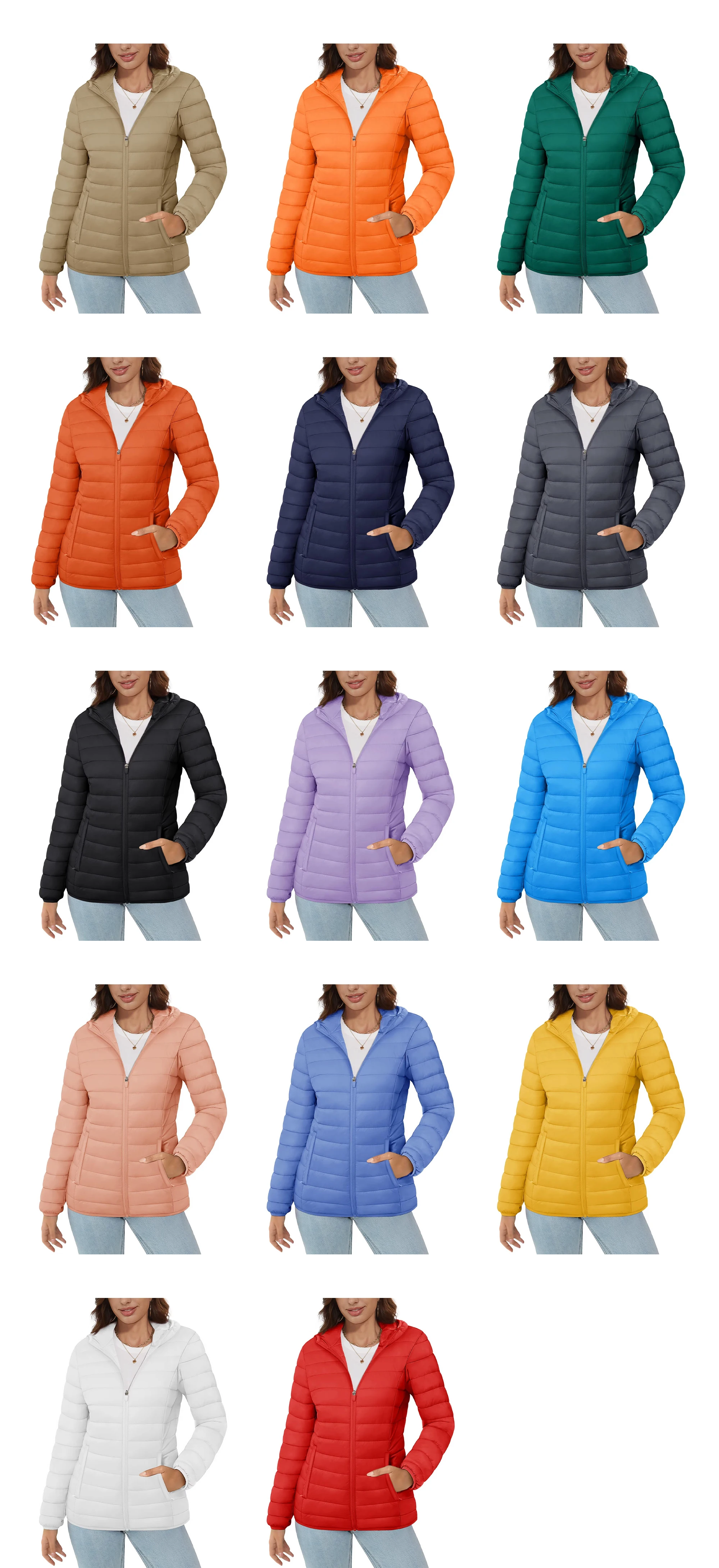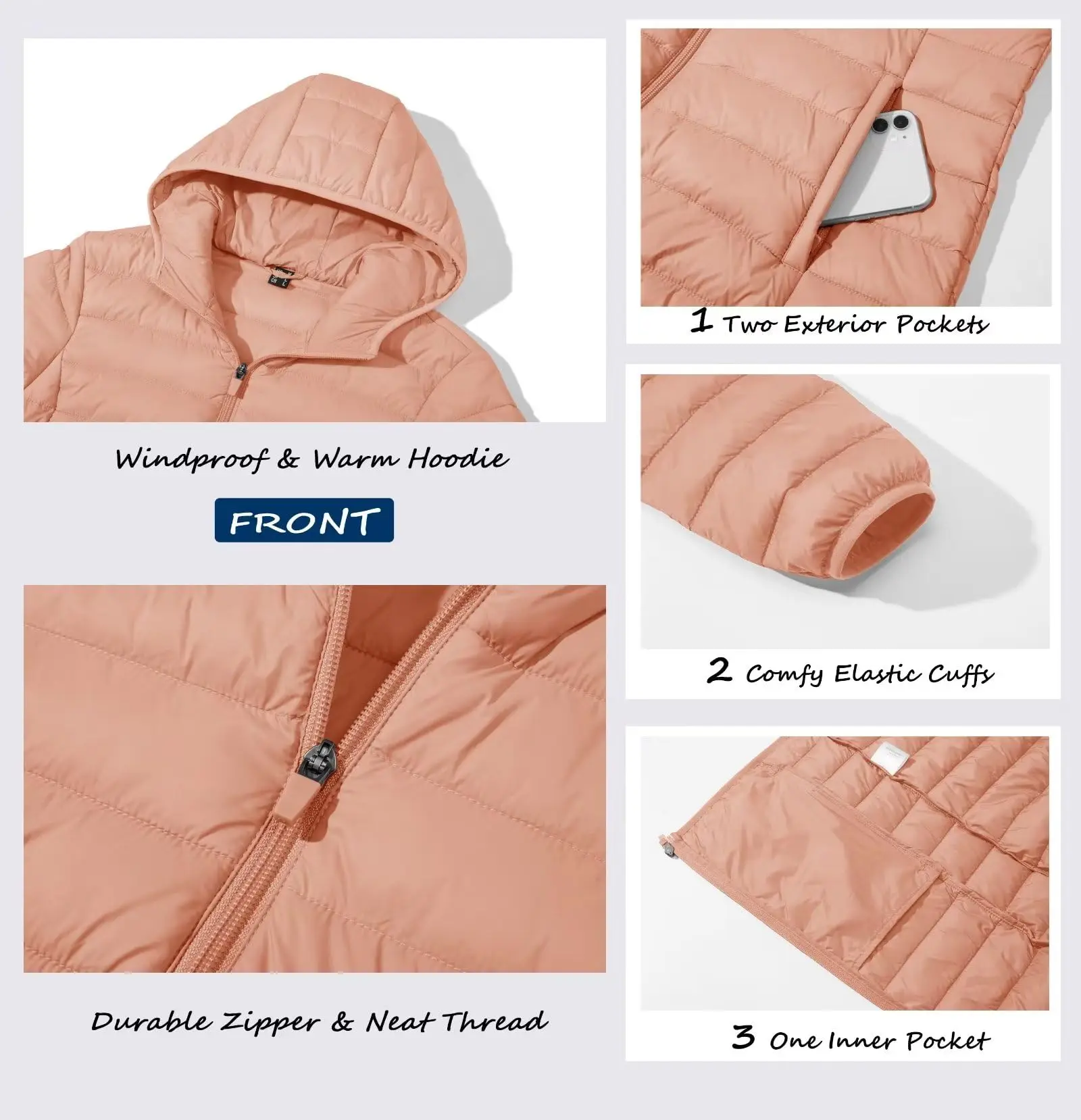 MAGCOMSEN Women‘s Lightweight Hooded Puffer Jacket Full Zip Windbreaker Waterproof Quilted Down Coat Winter Warm Outerwear