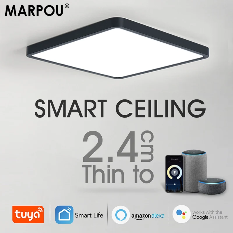MARPOU Tuya Smart LED Ceiling lamp Wood Grain Square Design with App Voice Control (Alexa/Google) Remote Control For Living room