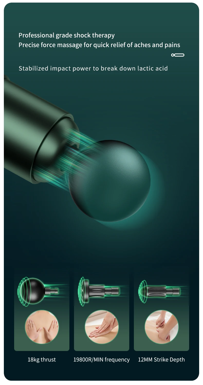 Pain Relief:12mm deep tissue massage equipped with 8 specialized massage heads for different muscle groups, with a maximum speed of 19800rpm, it is can reduce muscle stiffness, pain, and tension after exercise, but also promotes blood circulation and alleviates office fatigue throughout the day
