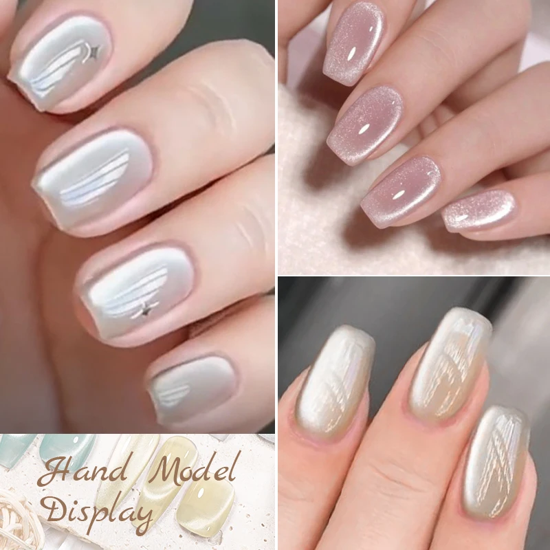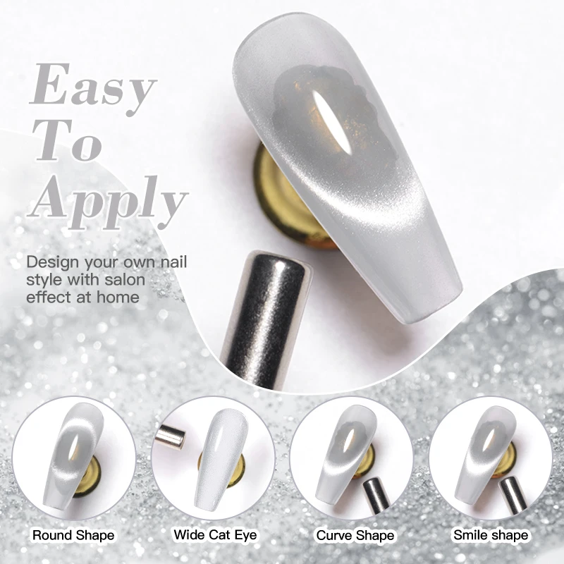 Step 4. Apply magnetic uv gel,do not cure and put the magnet over the nails for 10-15 seconds to get the meganetic effect,