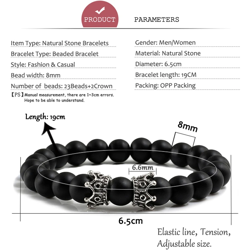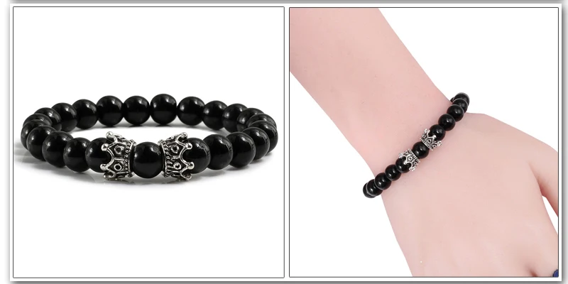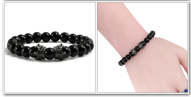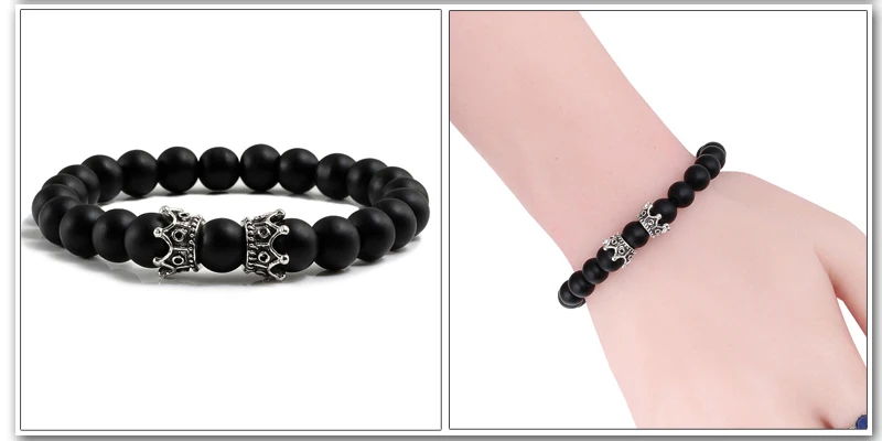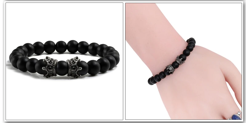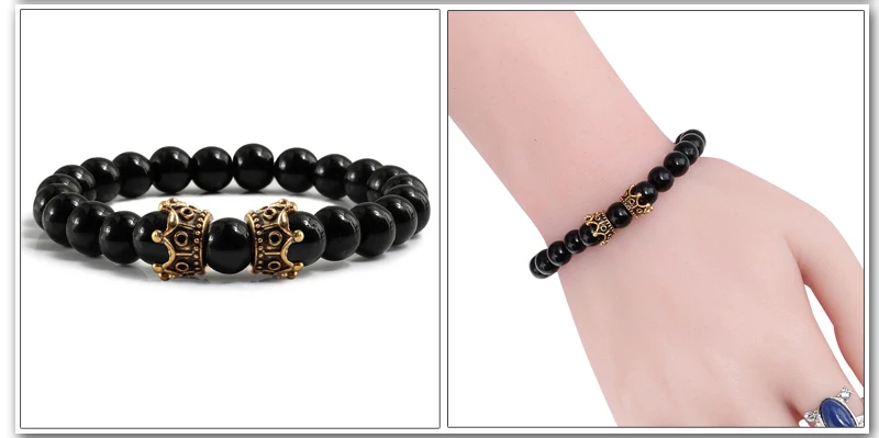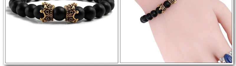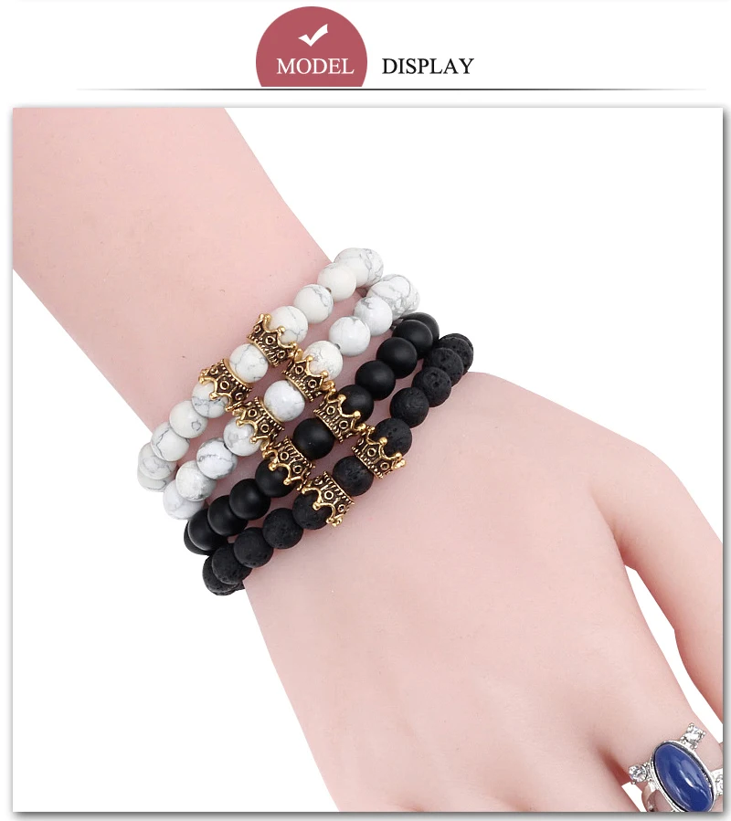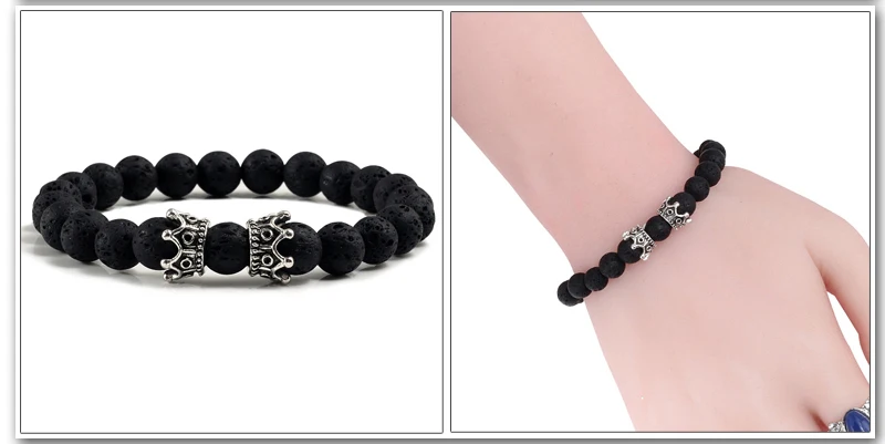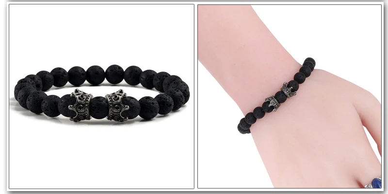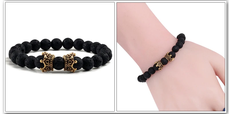 Men Black Lava Bracelet Natural Stone Bead Handmade Bracelets Bangle Women Gold Color Black Double Crown Bracelet Couple Jewelry