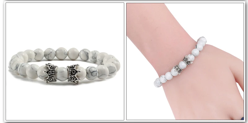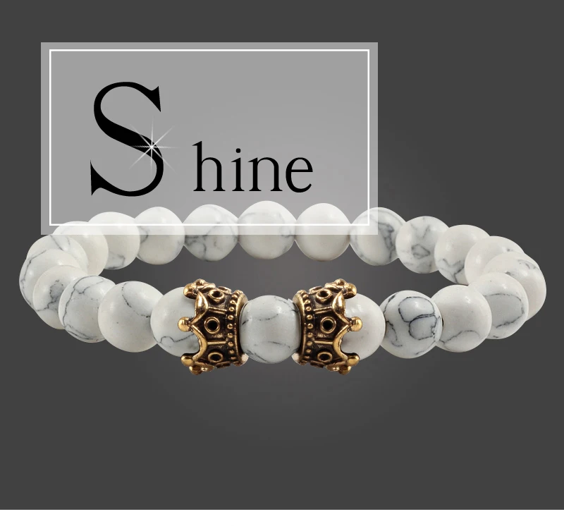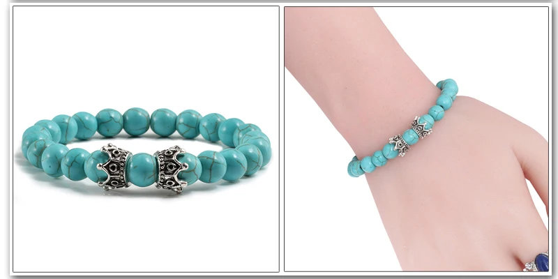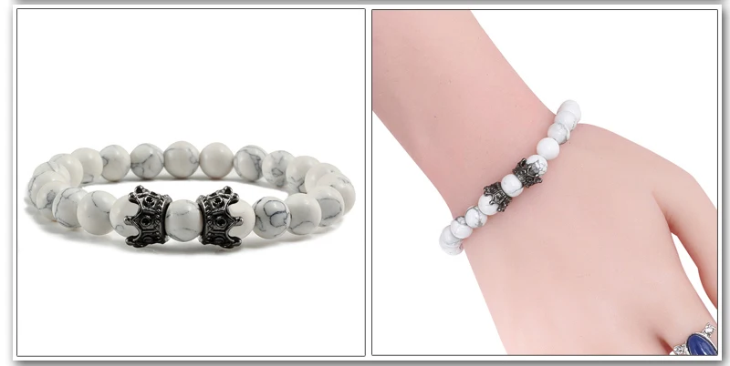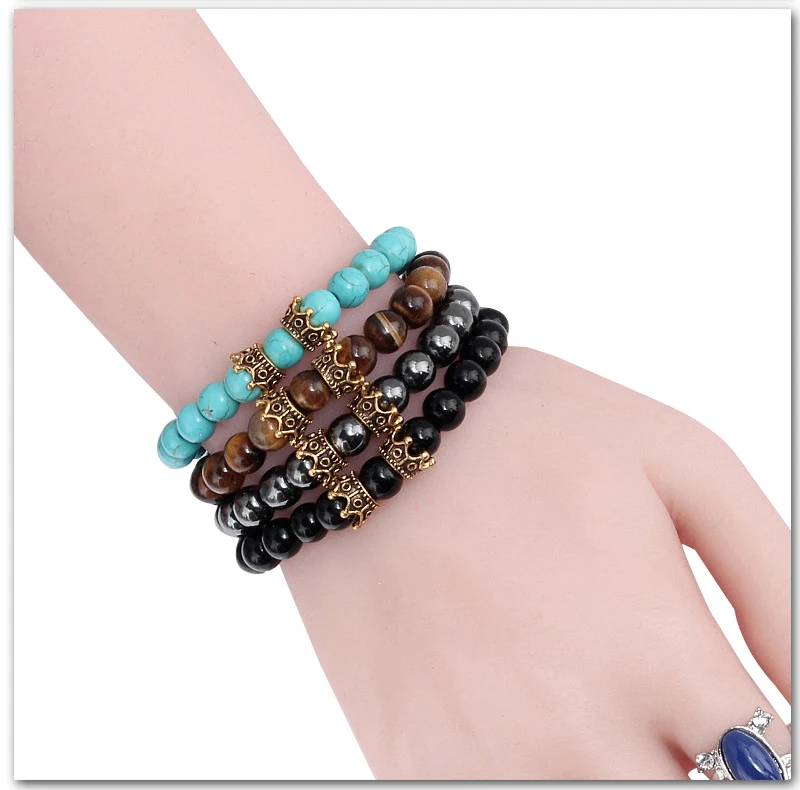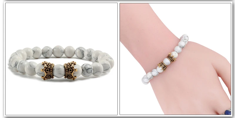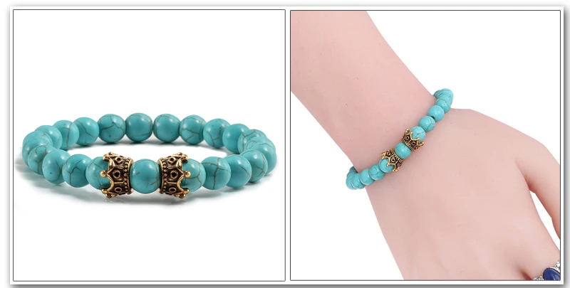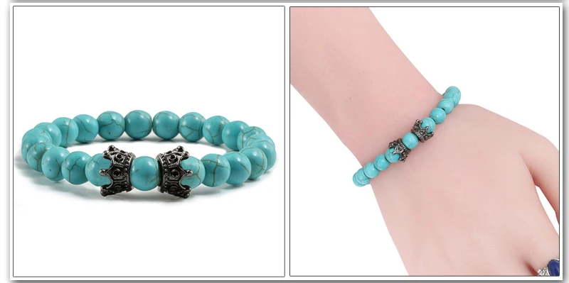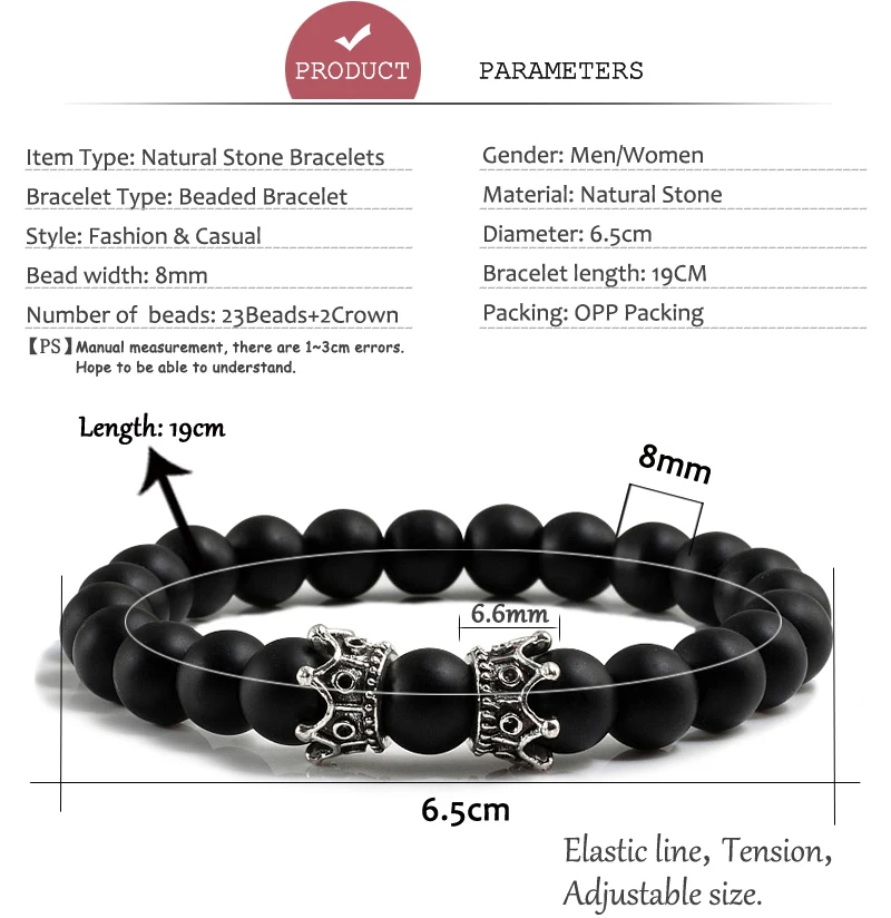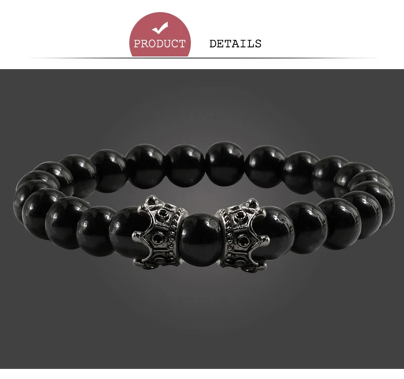 Men Black Lava Bracelet Natural Stone Bead Handmade Bracelets Bangle Women Gold Color Black Double Crown Bracelet Couple Jewelry