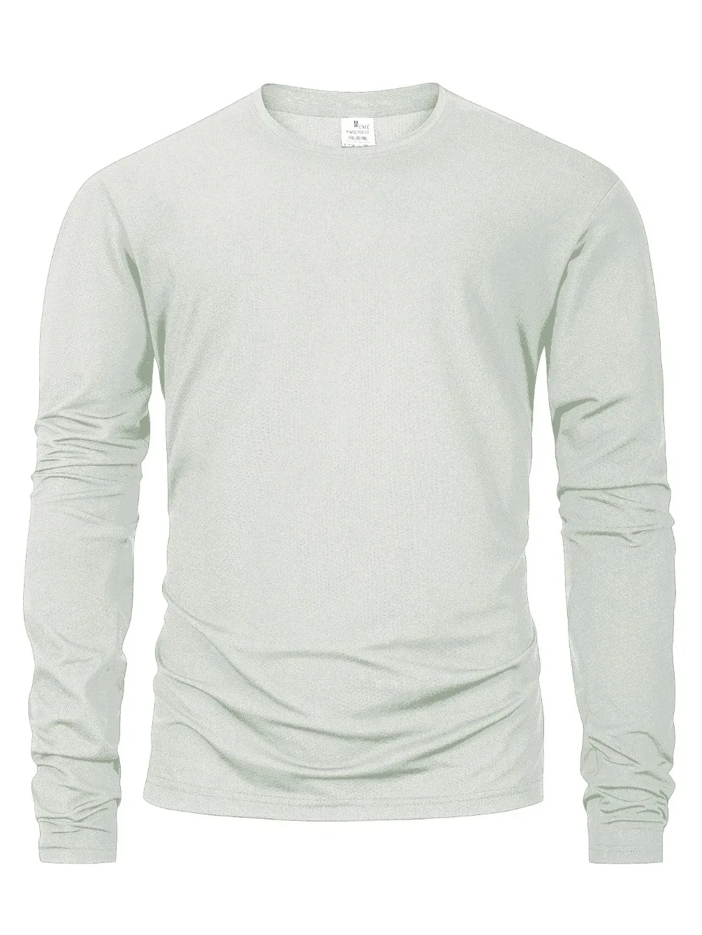 Men Casual Long Sleeved T-Shirt Autumn Solid Color Thermal Tops Round Neck High Quality Basic Loose Breathable Long Sleeved Tops