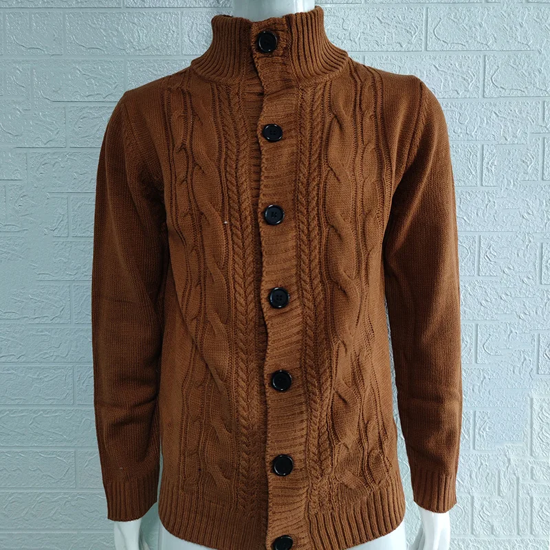Men New Cardigan Stand Collar Sweaters Coat Knitted Full Sleeve Single Breasted Solid Knit Open Stitch Coats Autumn Winter 2025