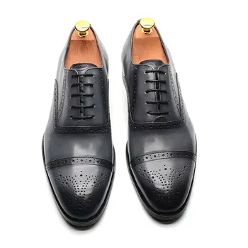 Luxury Men’s Dress Shoes Genuine Leather Cap Toe Oxford Lace-up Black Gray Brown Wedding Business Office Brogue Formal Shoe Man