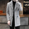 Men Business Jacket Medium Length Single-breasted Solid Color Plush Collar Autumn Winter Woolen Coat Windbreaker Streetwear