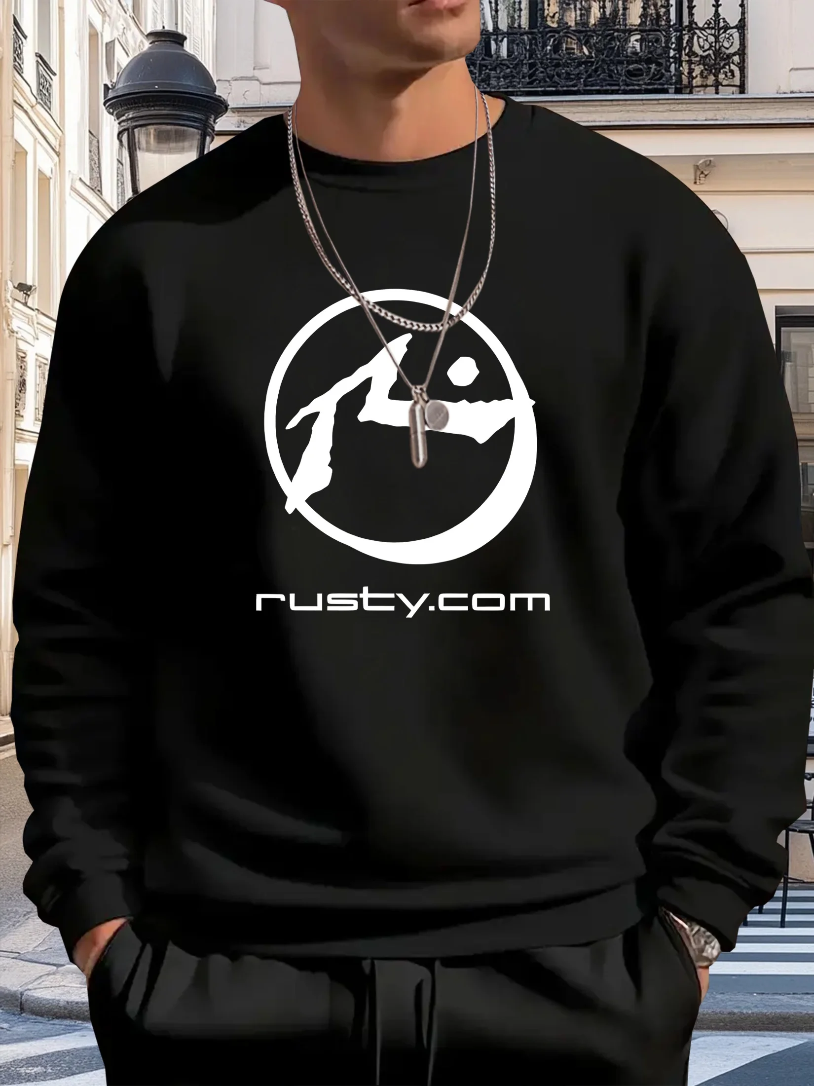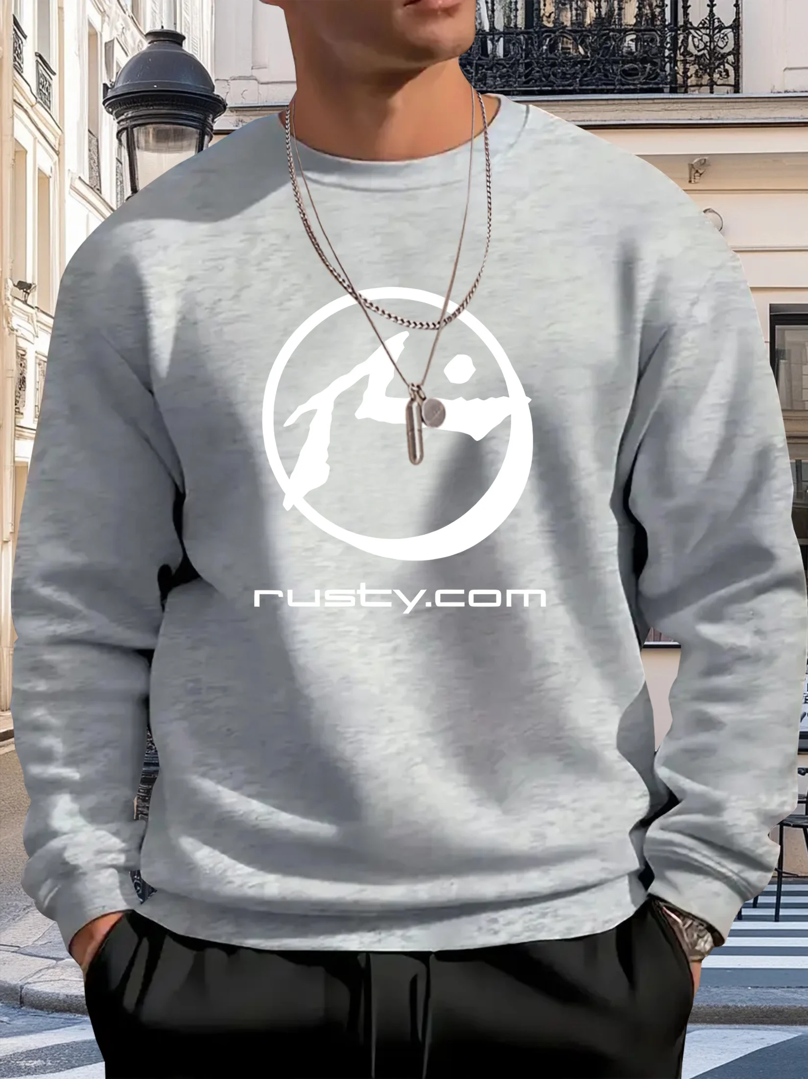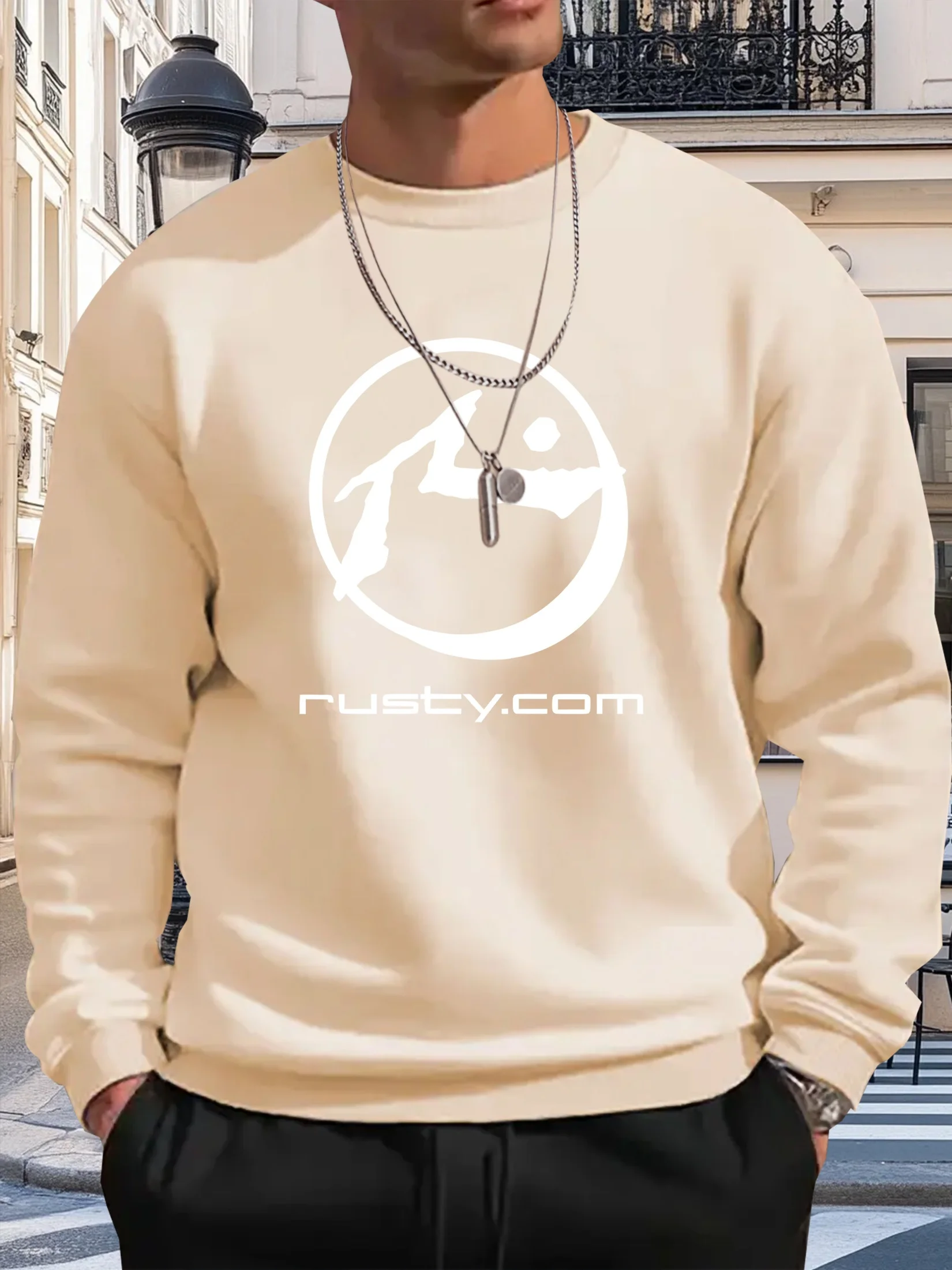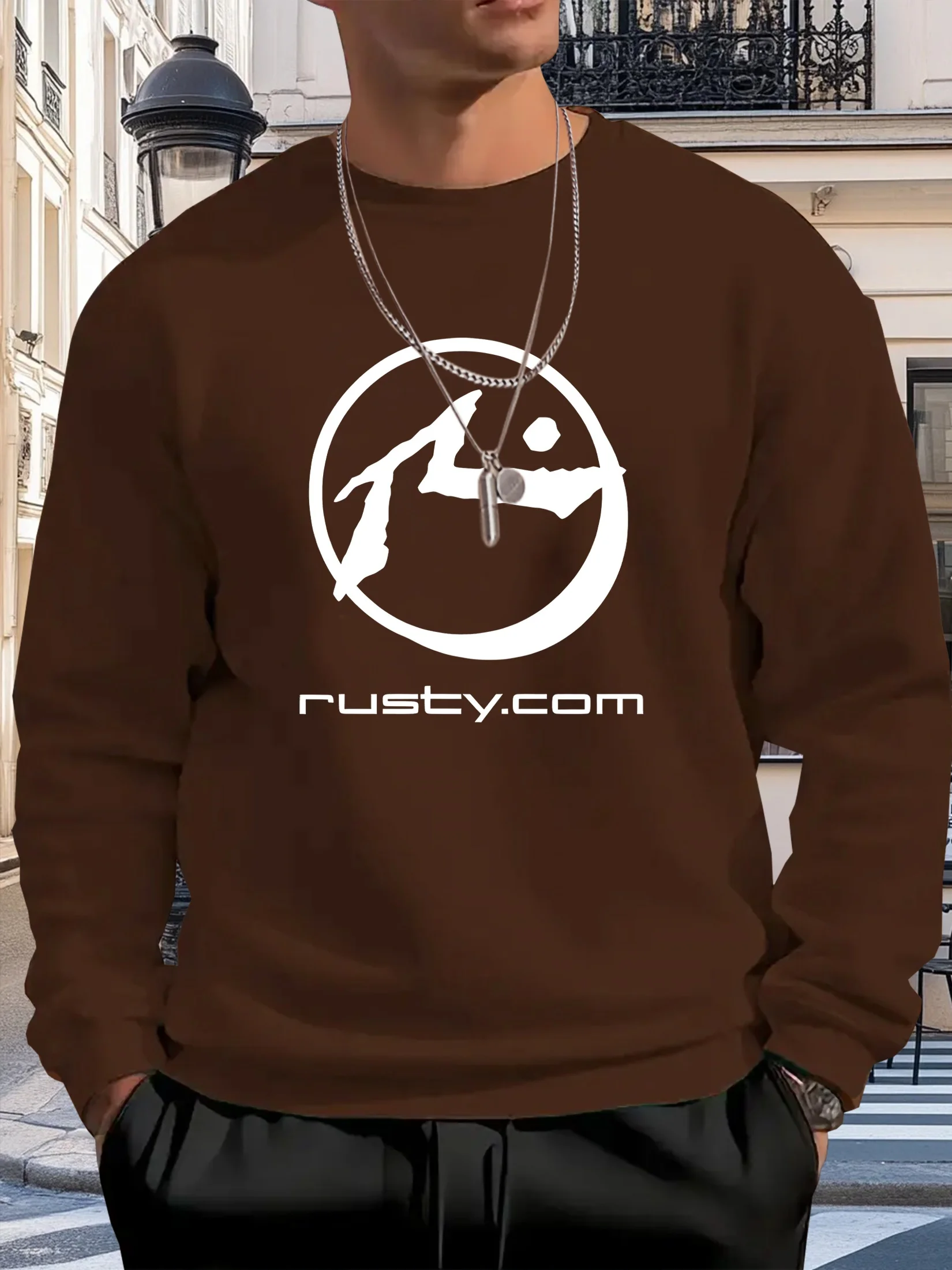 Men’s Casual Graphic Print Crewneck Sweatshirt Loose Fit Brown with White Circular Design Machine Washable Dry Cleanable