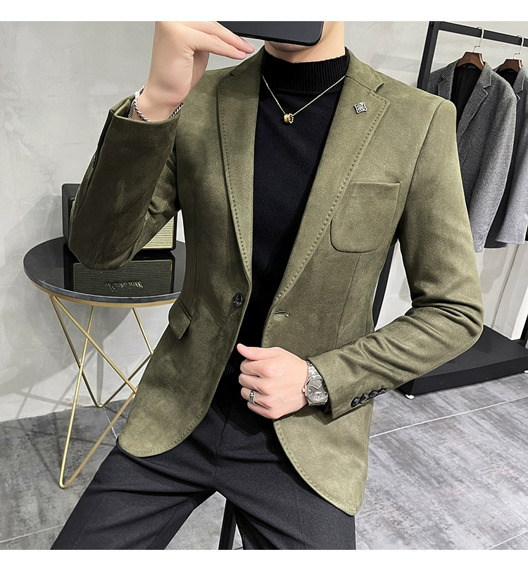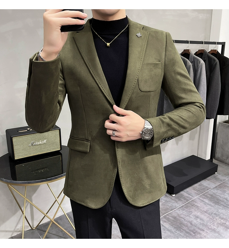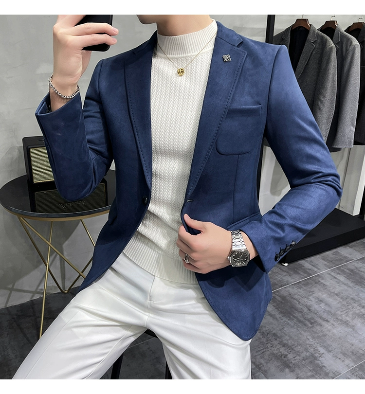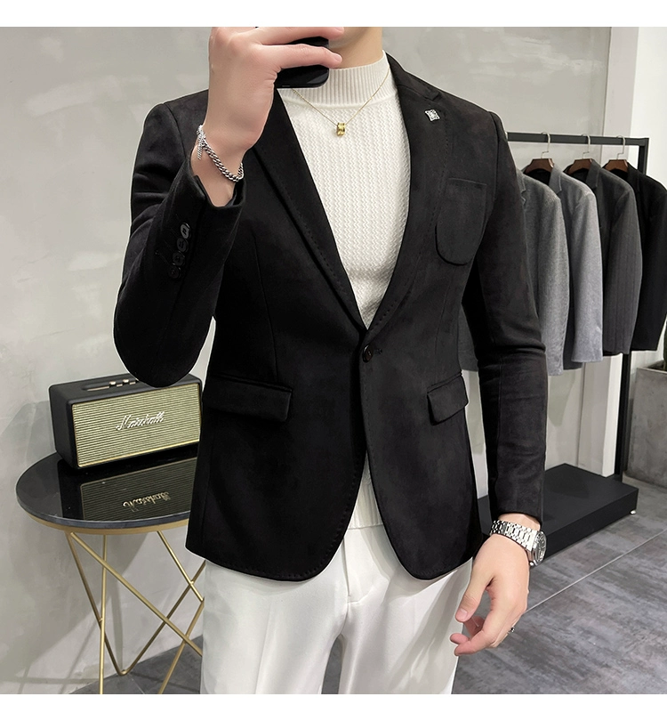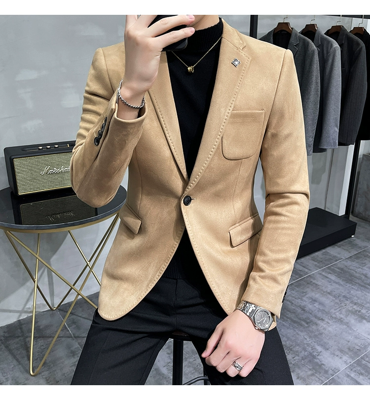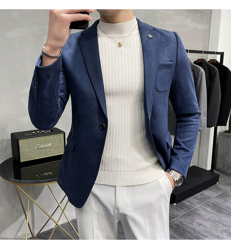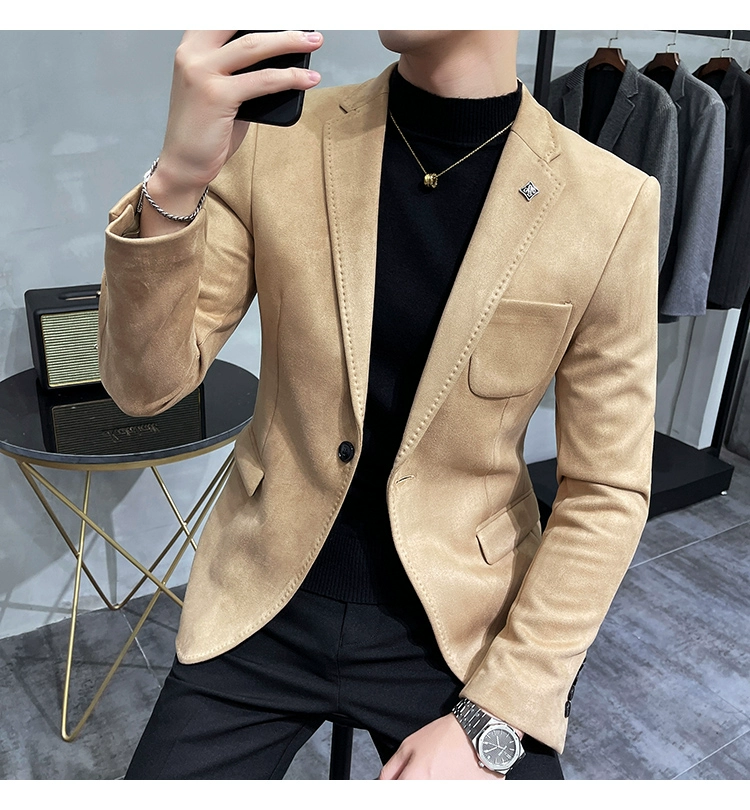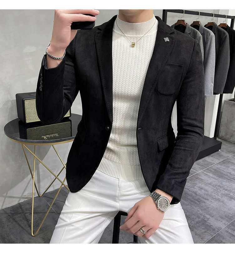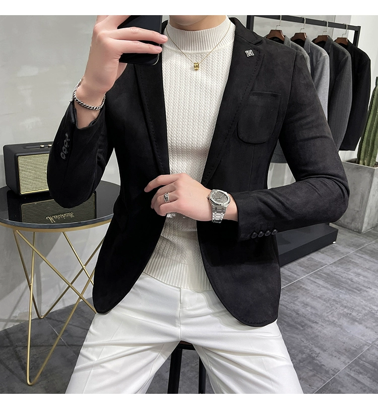 Men’s Deerskin Fleece Jacket Suit Coat Blazer Men’s Business Leisure Slim Fit Brand Fashion High Quality Single Button Suit Coat