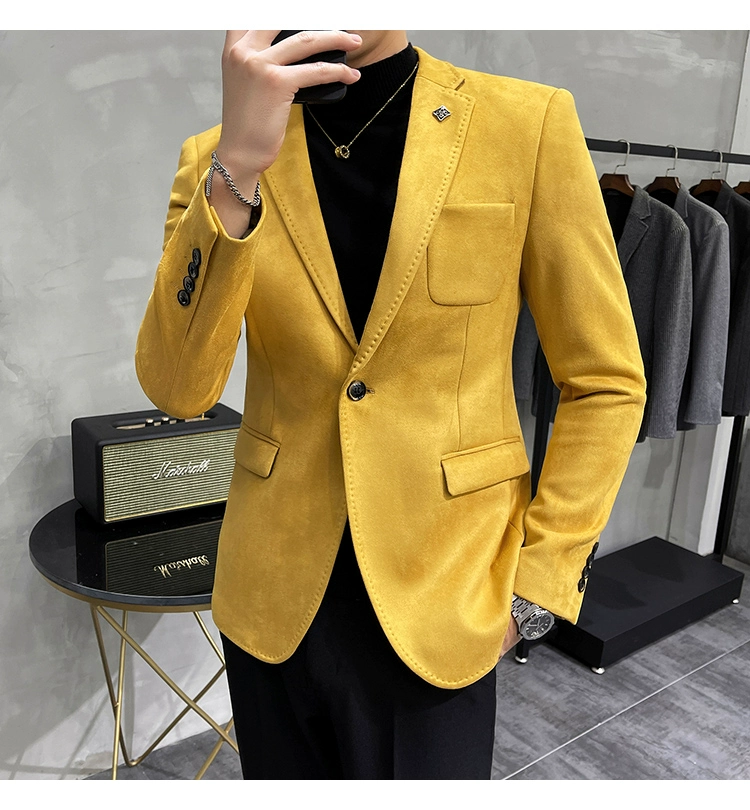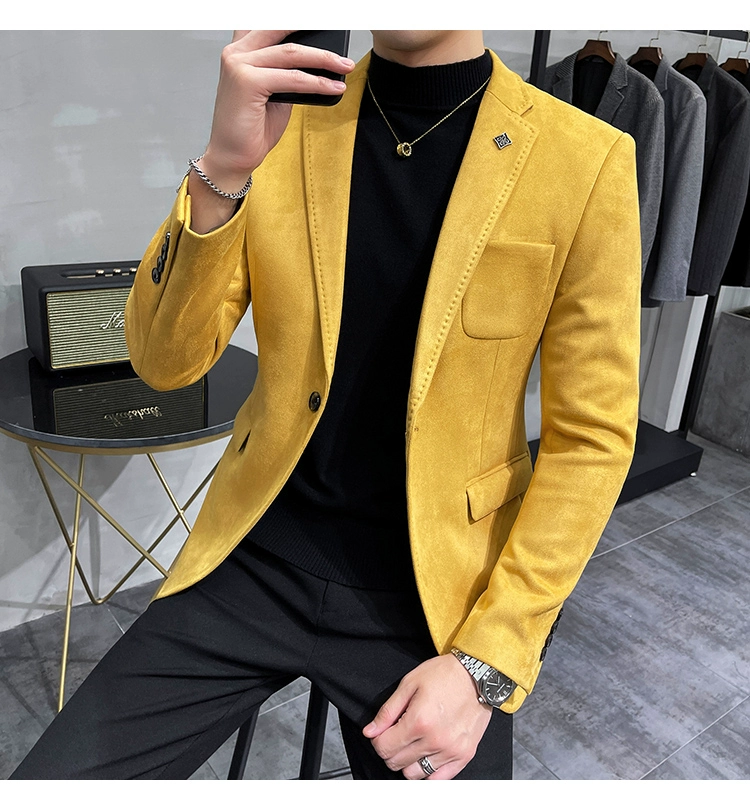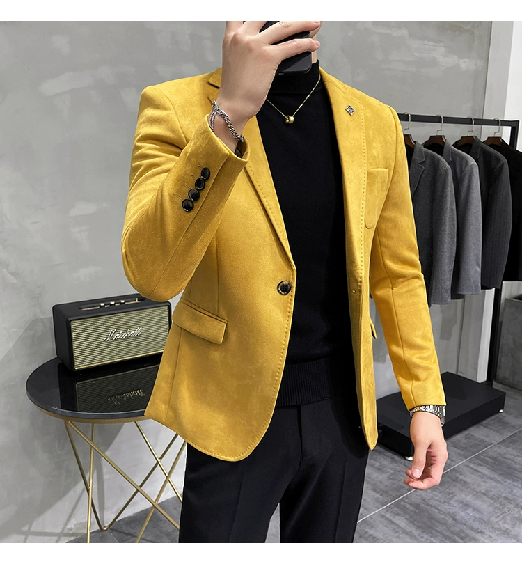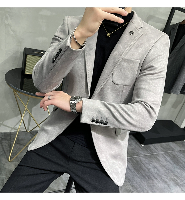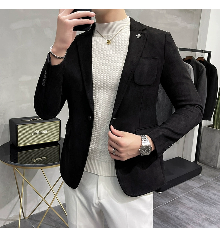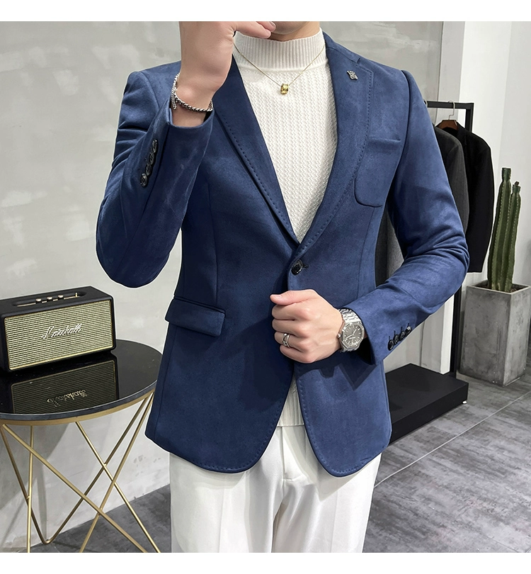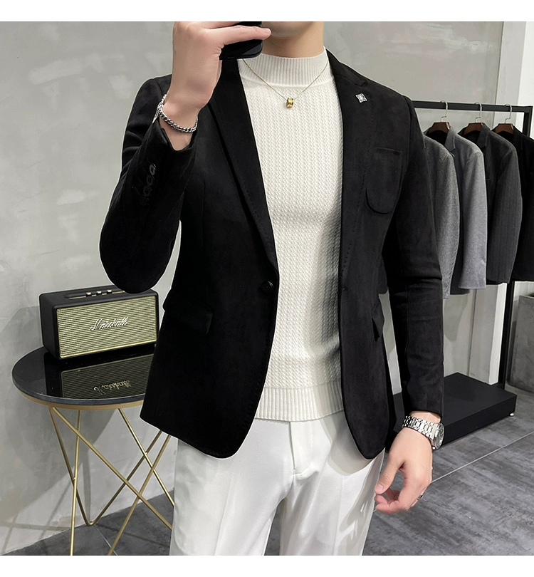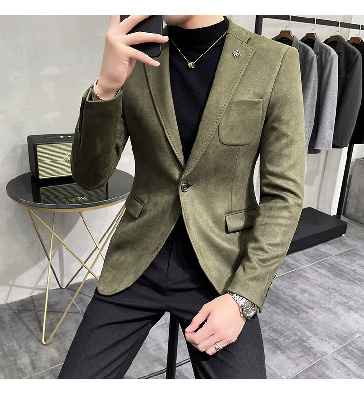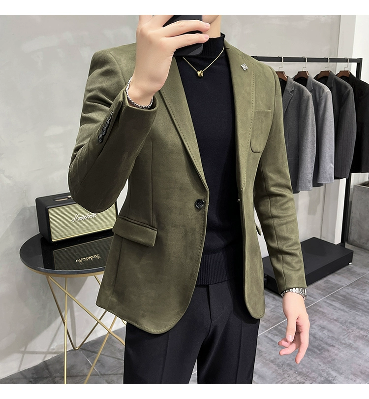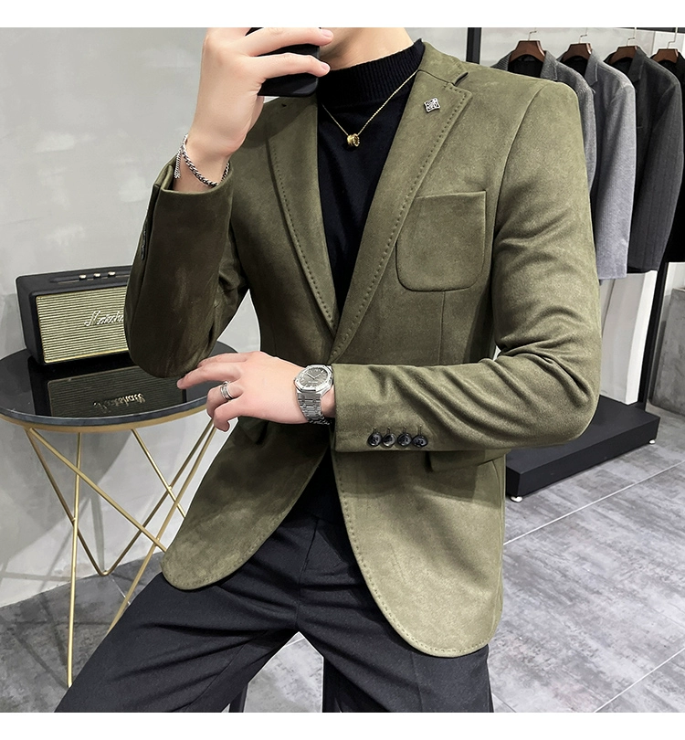 Men’s Deerskin Fleece Jacket Suit Coat Blazer Men’s Business Leisure Slim Fit Brand Fashion High Quality Single Button Suit Coat
