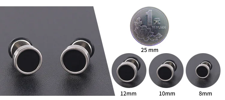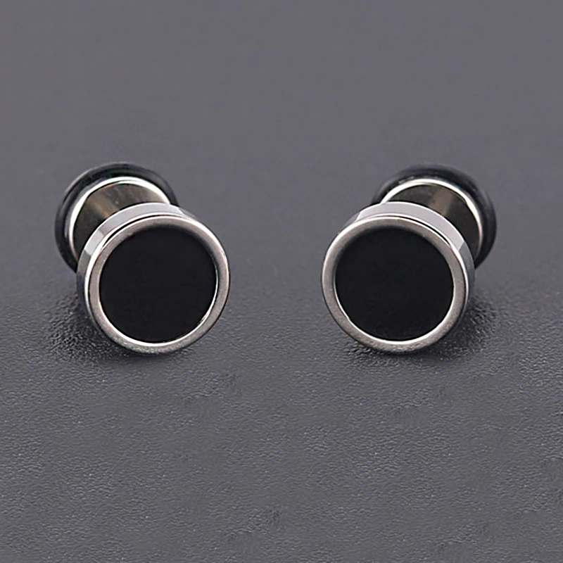 Men’s Earings Titanium Steel Round Black Oil Drip Stud Earrings For Men Korean Fashion Stainless Steel Punk Jewelry Accessories