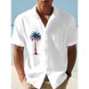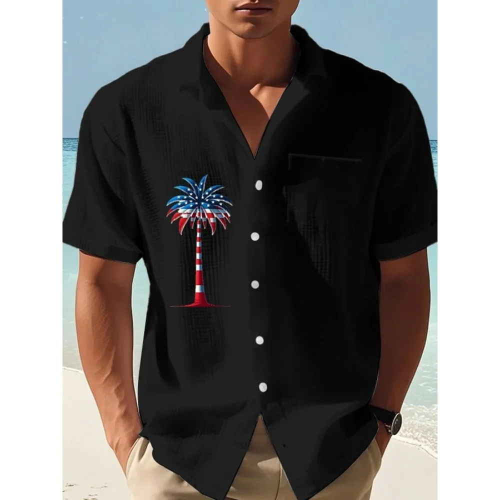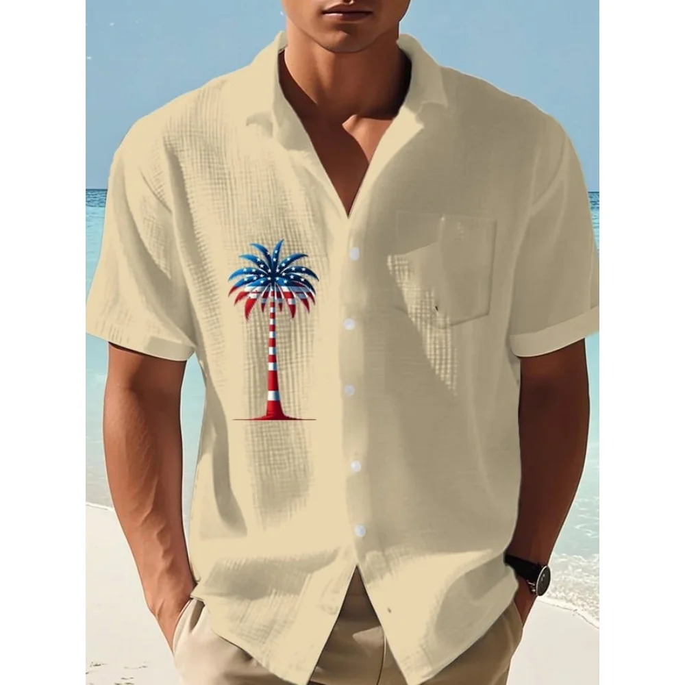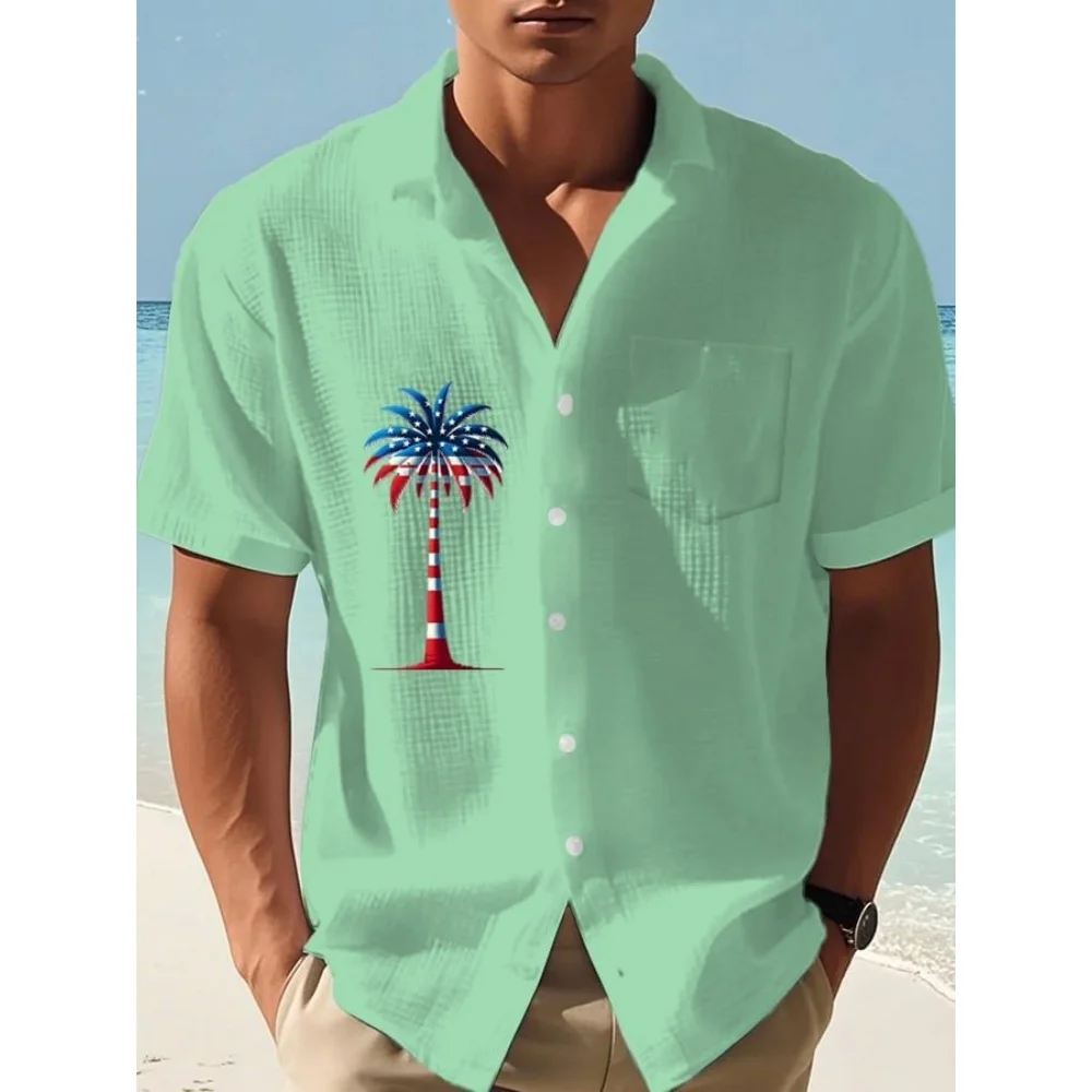 Men’s linen shirt coconut tree shirt Hawaiian vacation style simple, comfortable, breathable and casual